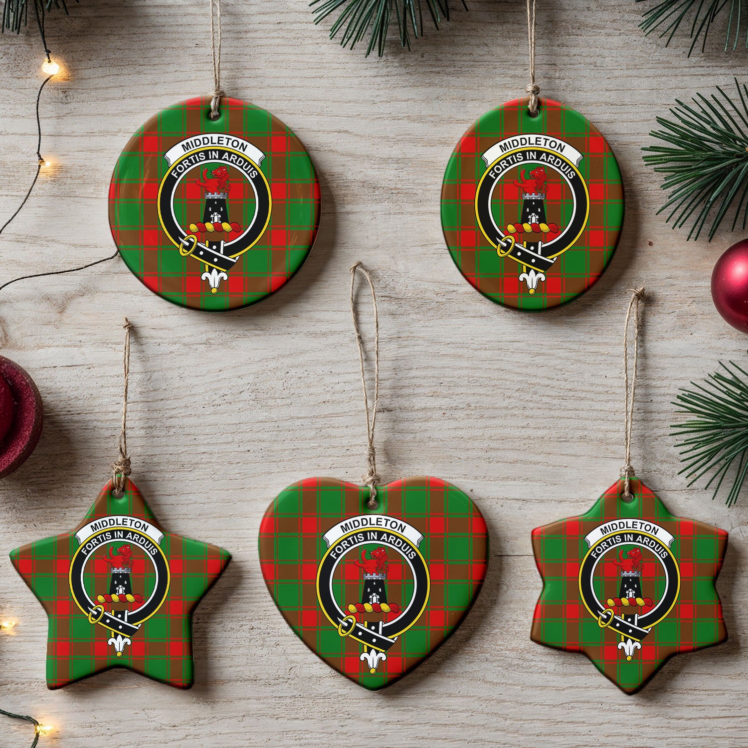 Middleton Modern Tartan Crest Christmas Ceramic Ornament