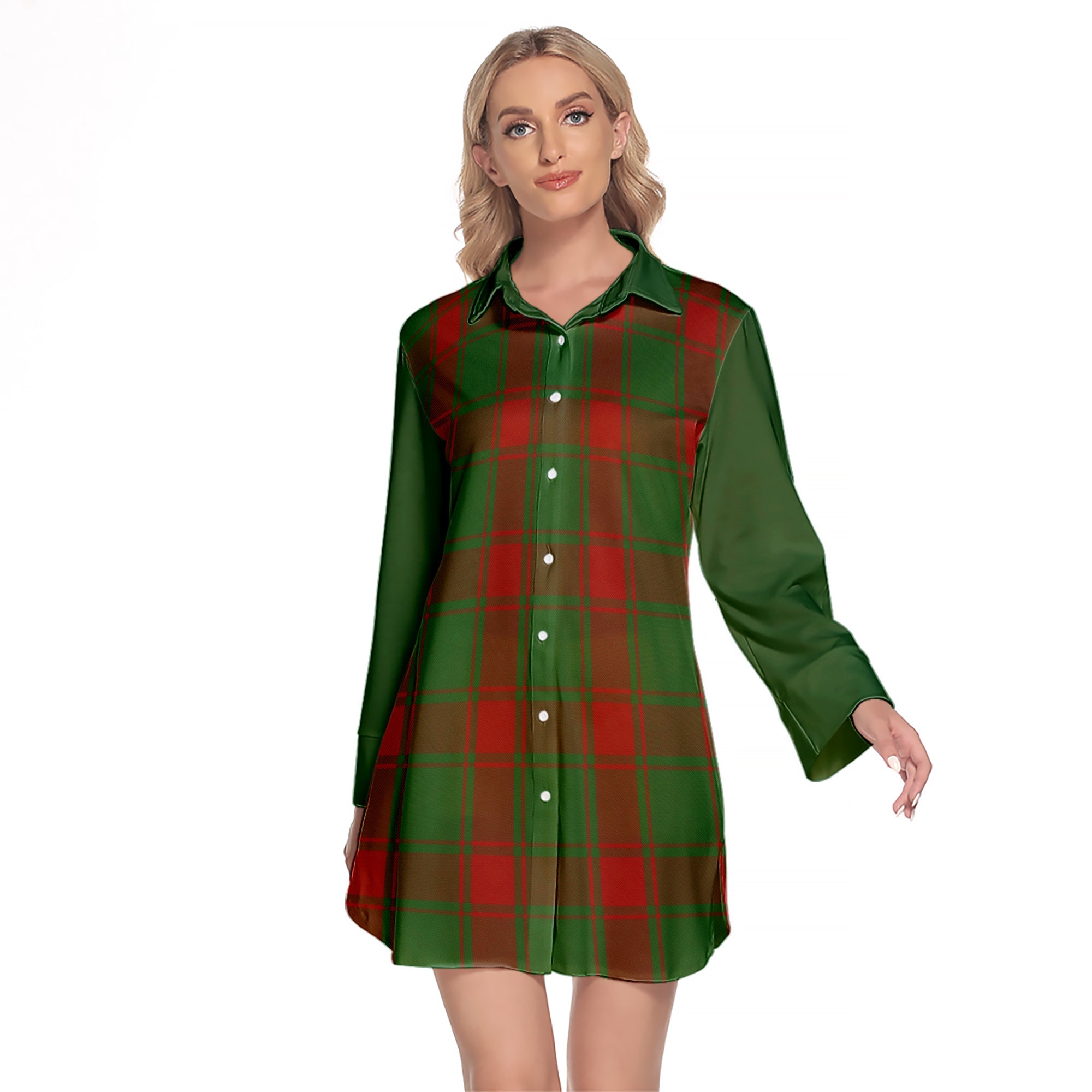 Middleton Tartan Women's Lapel Shirt Dress With Long Sleeve