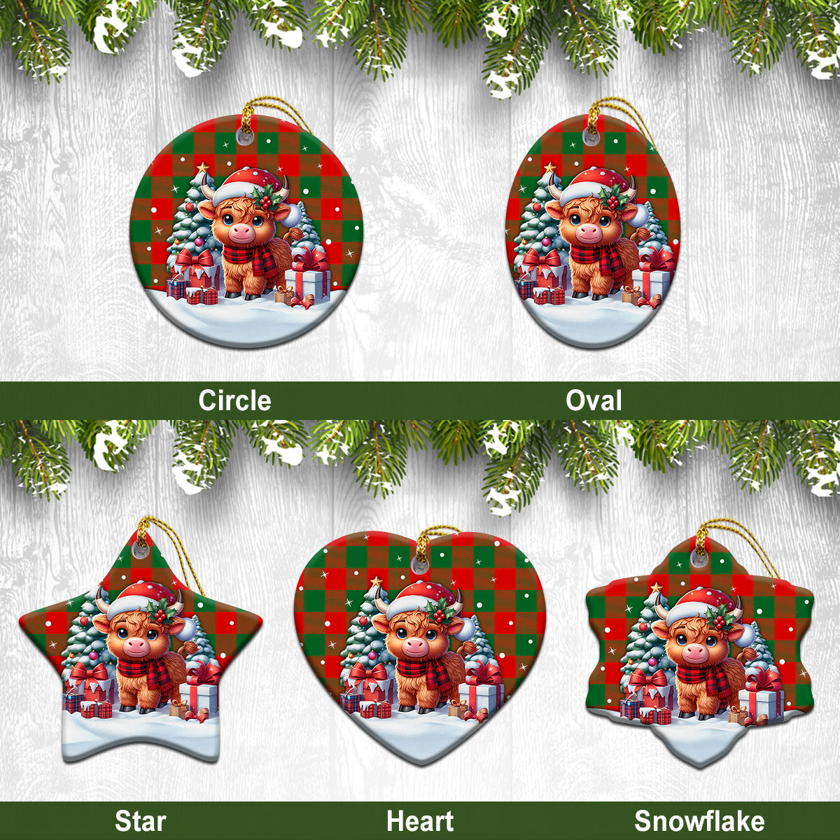 Moncreiffe (or Moncreiff) Tartan Christmas Ceramic Ornament - Highland Cow Winter Style