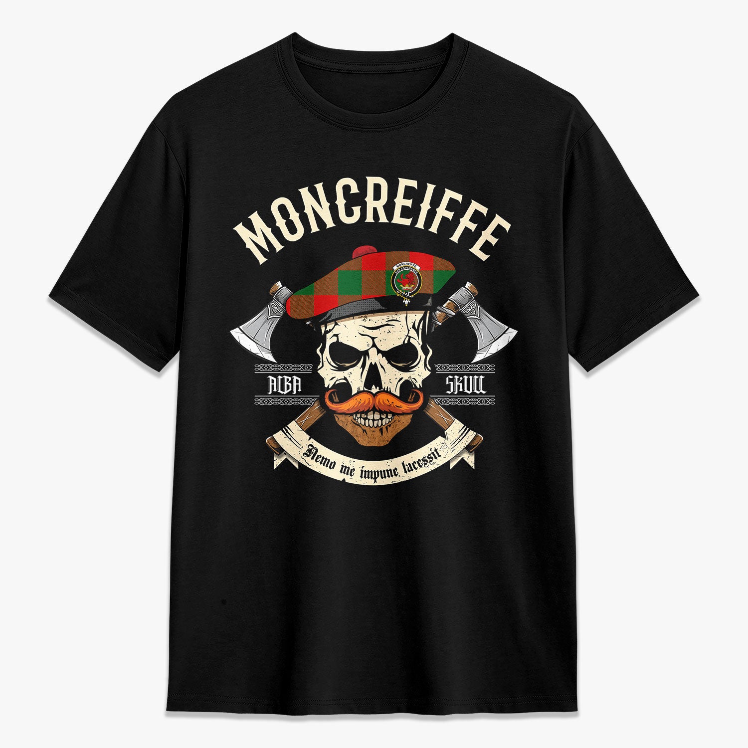 Moncreiffe (or Moncreiff) Tartan Crest 2D T-shirt - Alba Skull Style,