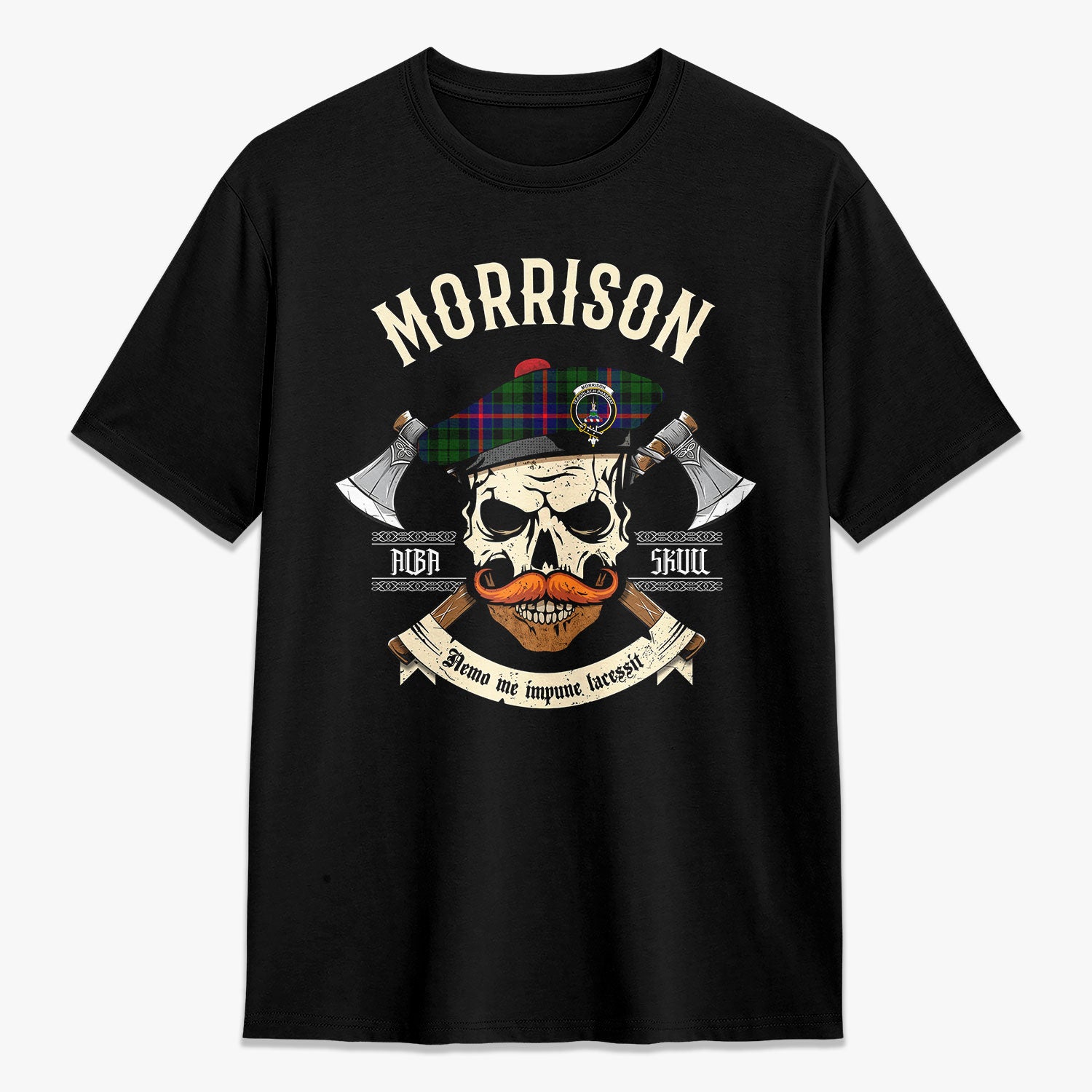 Morrison Modern Tartan Crest 2D T-shirt - Alba Skull Style,