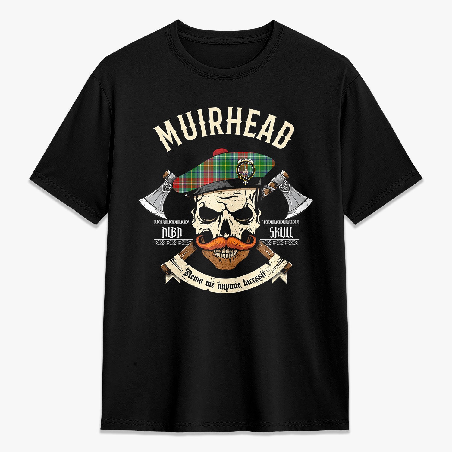 Muirhead Tartan Crest 2D T-shirt - Alba Skull Style,
