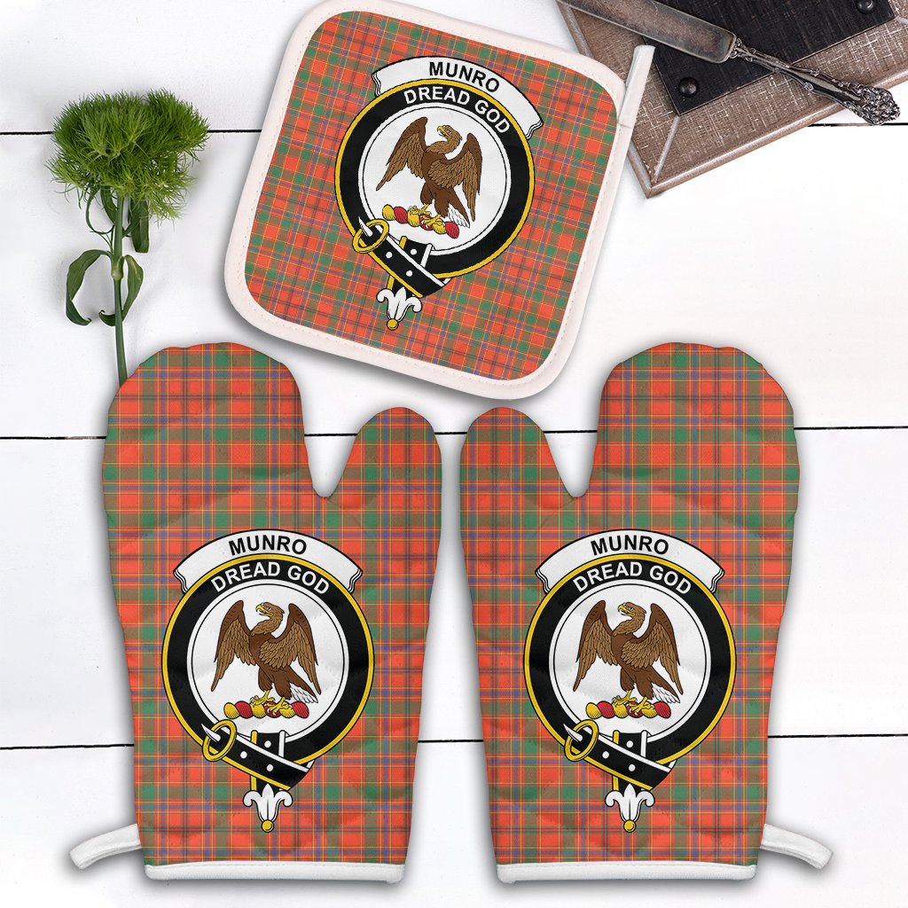 Munro Ancient Tartan Crest Oven Mitt And Pot Holder (2 Oven Mitts + 1 Pot Holder)