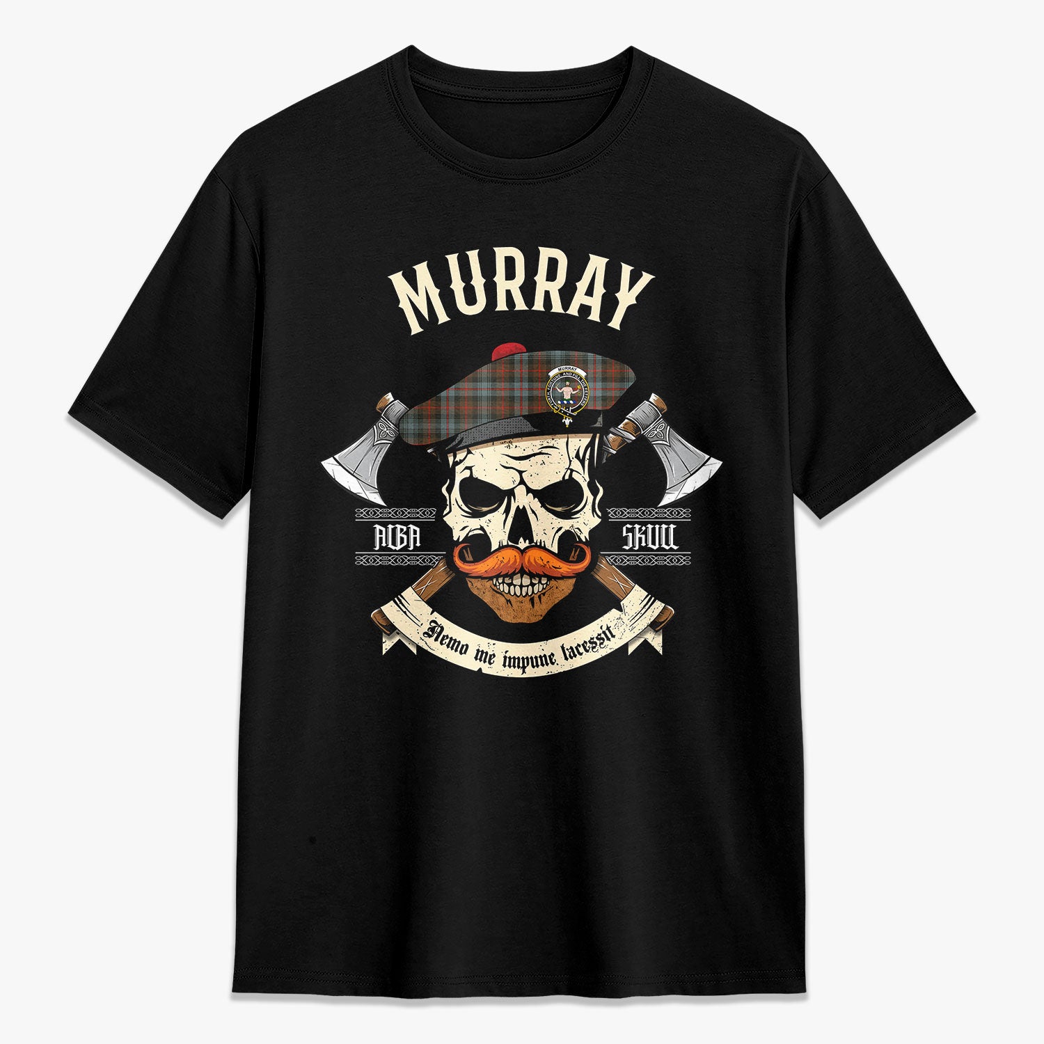Murray of Atholl Weathered Tartan Crest 2D T-shirt - Alba Skull Style,