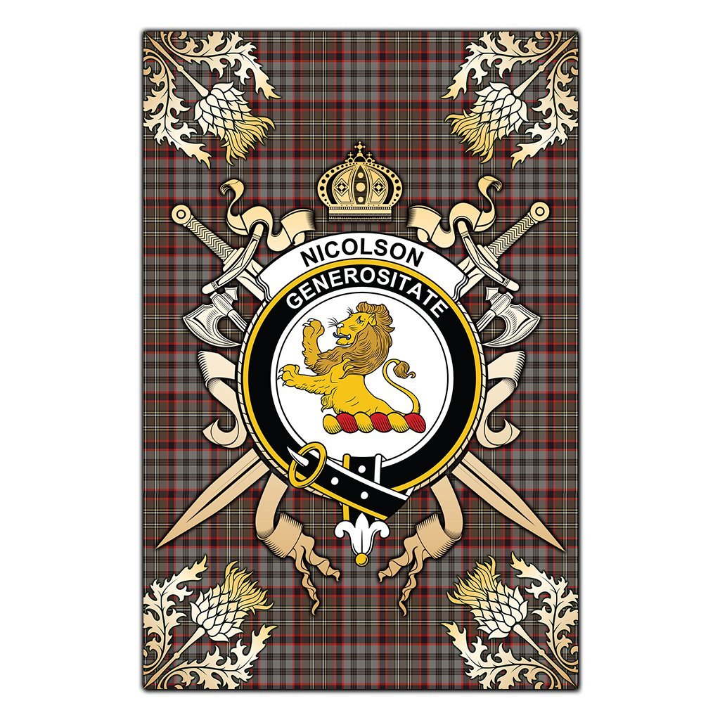 Nicolson Hunting Weathered Tartan Crest Black Garden Flag - Gold Thistle Style