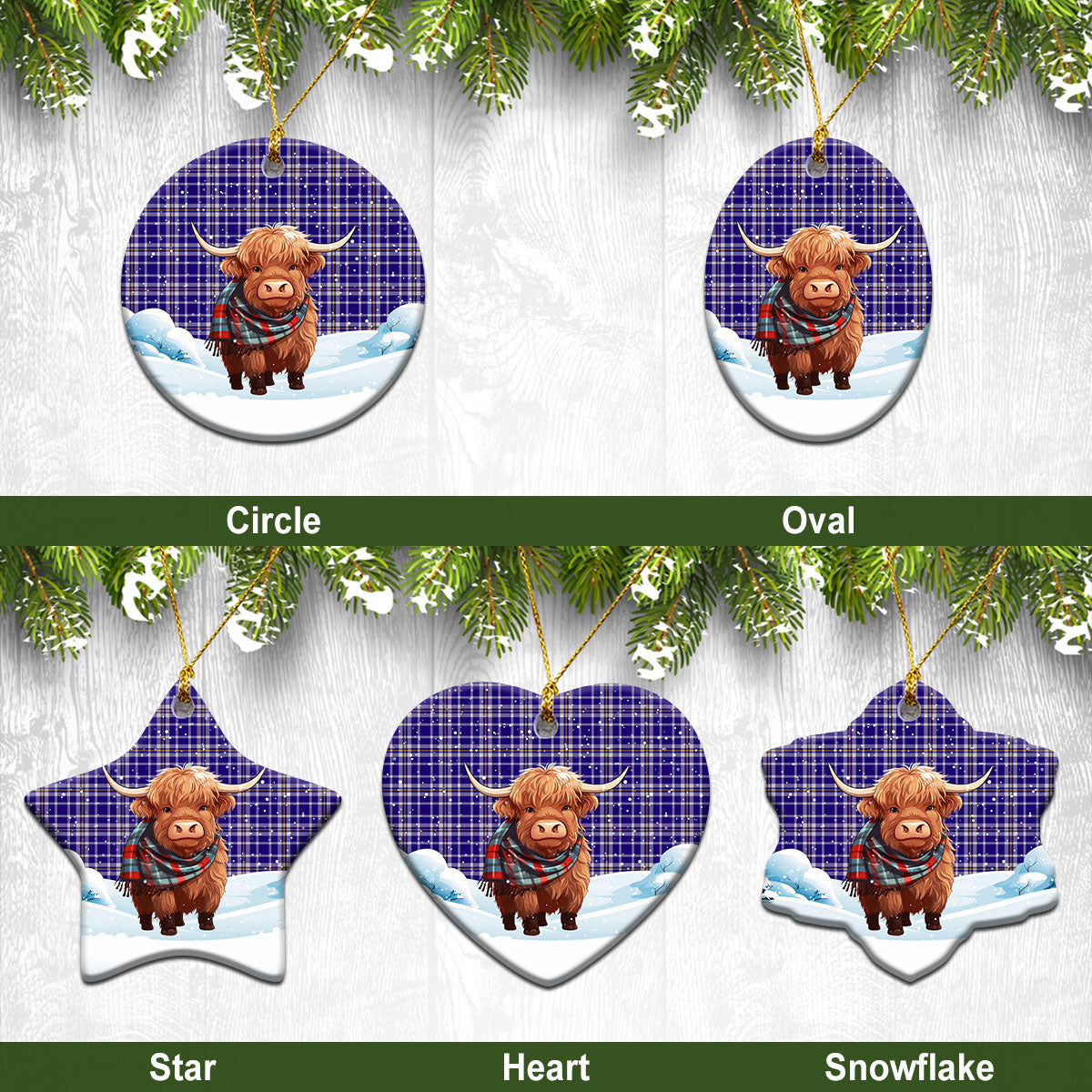Ochterlony Tartan Christmas Ceramic Ornament - Highland Cows Snow Style