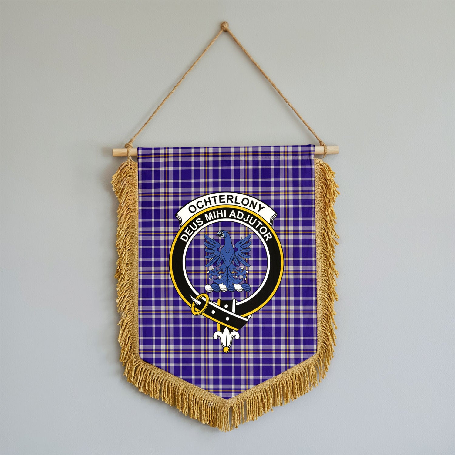 Ochterlony Tartan Crest Wall Hanging Banner - Wood Pole