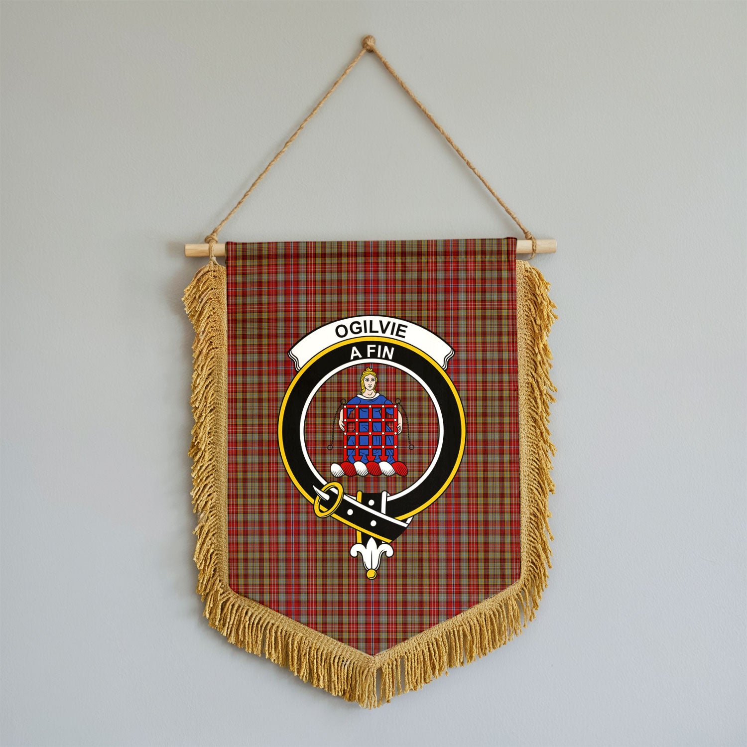 Ogilvie Tartan Crest Wall Hanging Banner - Wood Pole