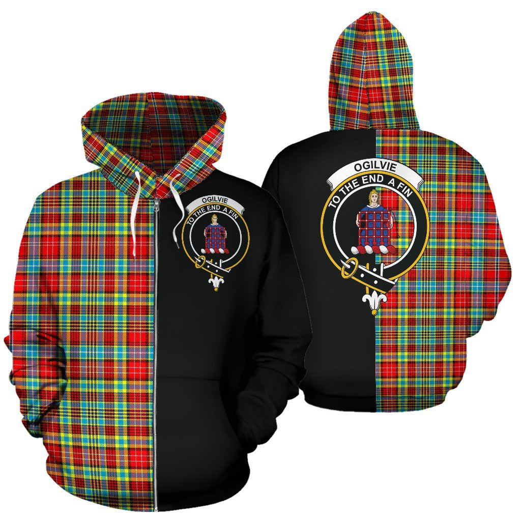 Ogilvie Tartan Crest Zipper Hoodie - Half Of Me Style