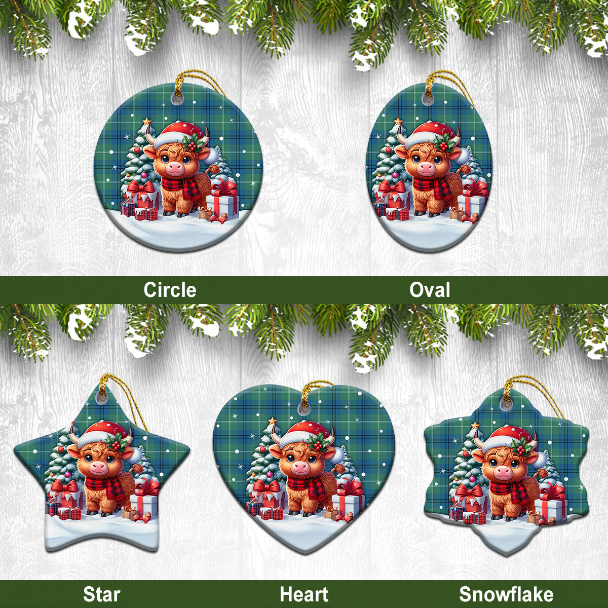 Oliphant Ancient Tartan Christmas Ceramic Ornament - Highland Cow Winter Style