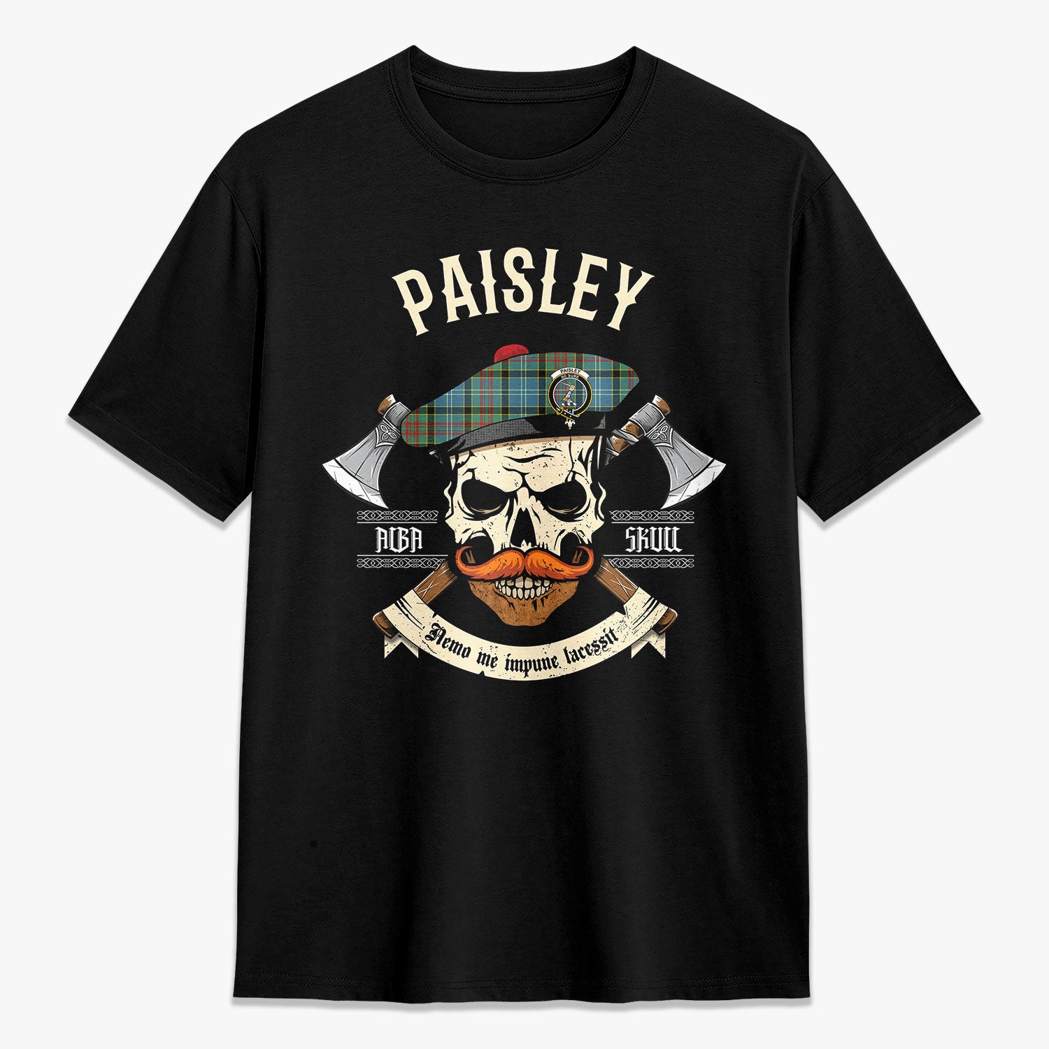 Paisley District Tartan Crest 2D T-shirt - Alba Skull Style