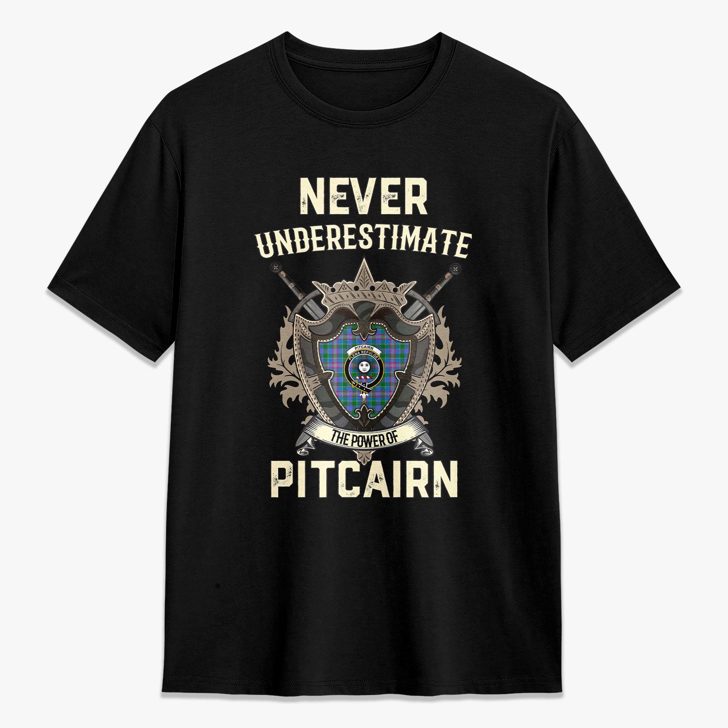 Pitcairn Hunting Tartan Crest 2D T-shirt - Never Underestimate Style