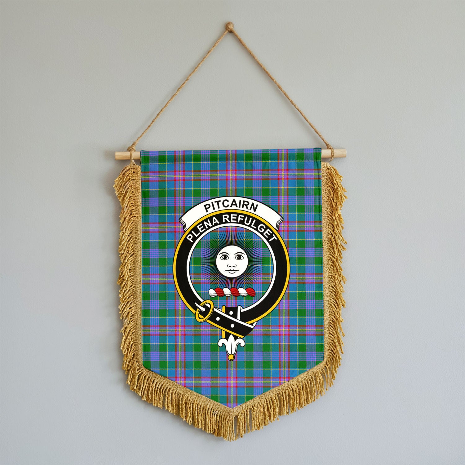 Pitcairn Hunting Tartan Crest Wall Hanging Banner - Wood Pole