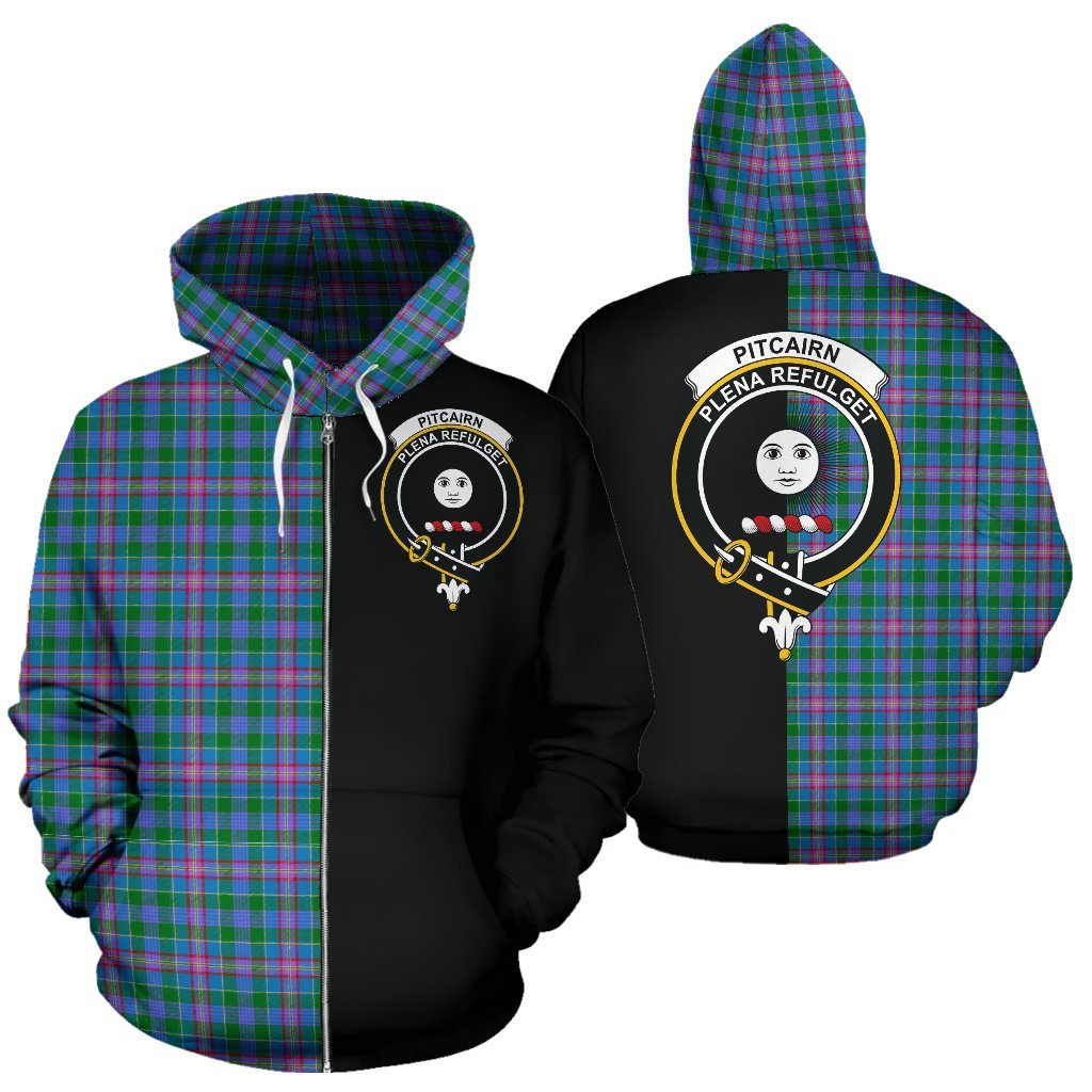 Pitcairn Hunting Tartan Crest Zipper Hoodie - Half Of Me Style