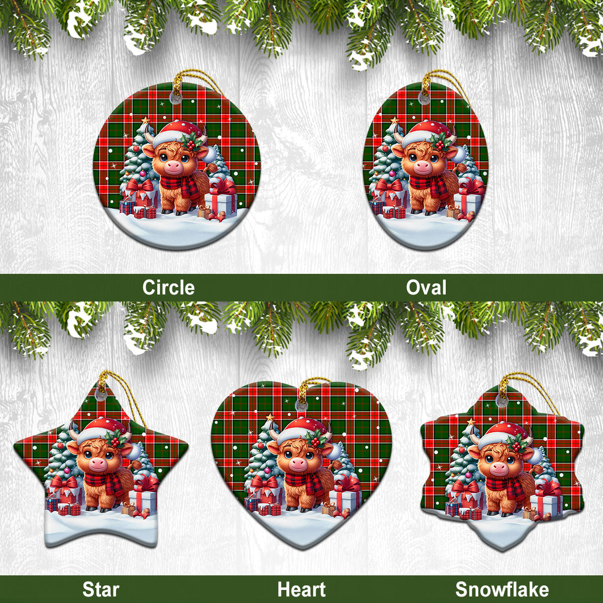 Pollock Tartan Christmas Ceramic Ornament - Highland Cow Winter Style