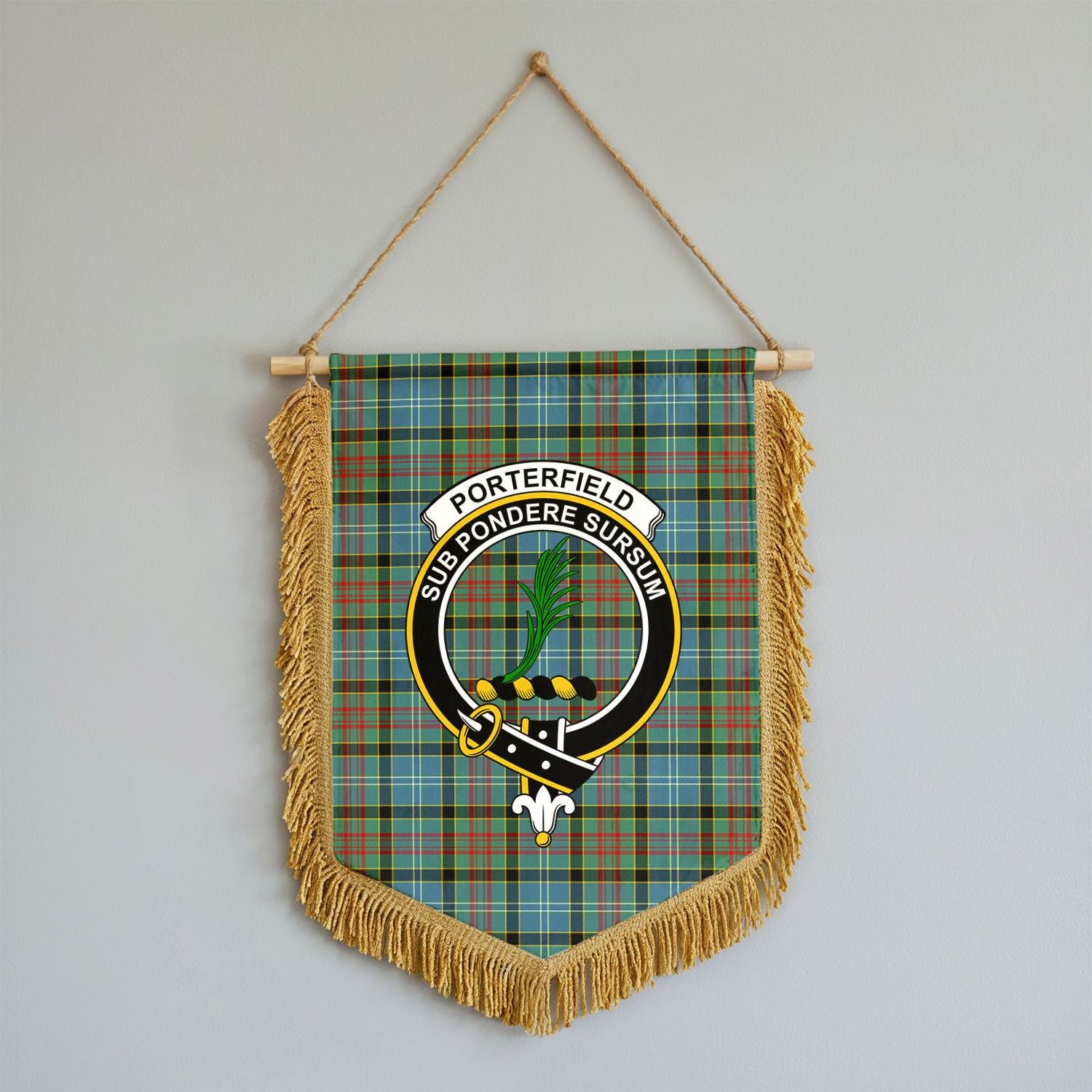 Porterfield Tartan Crest Wall Hanging Banner - Wood Pole