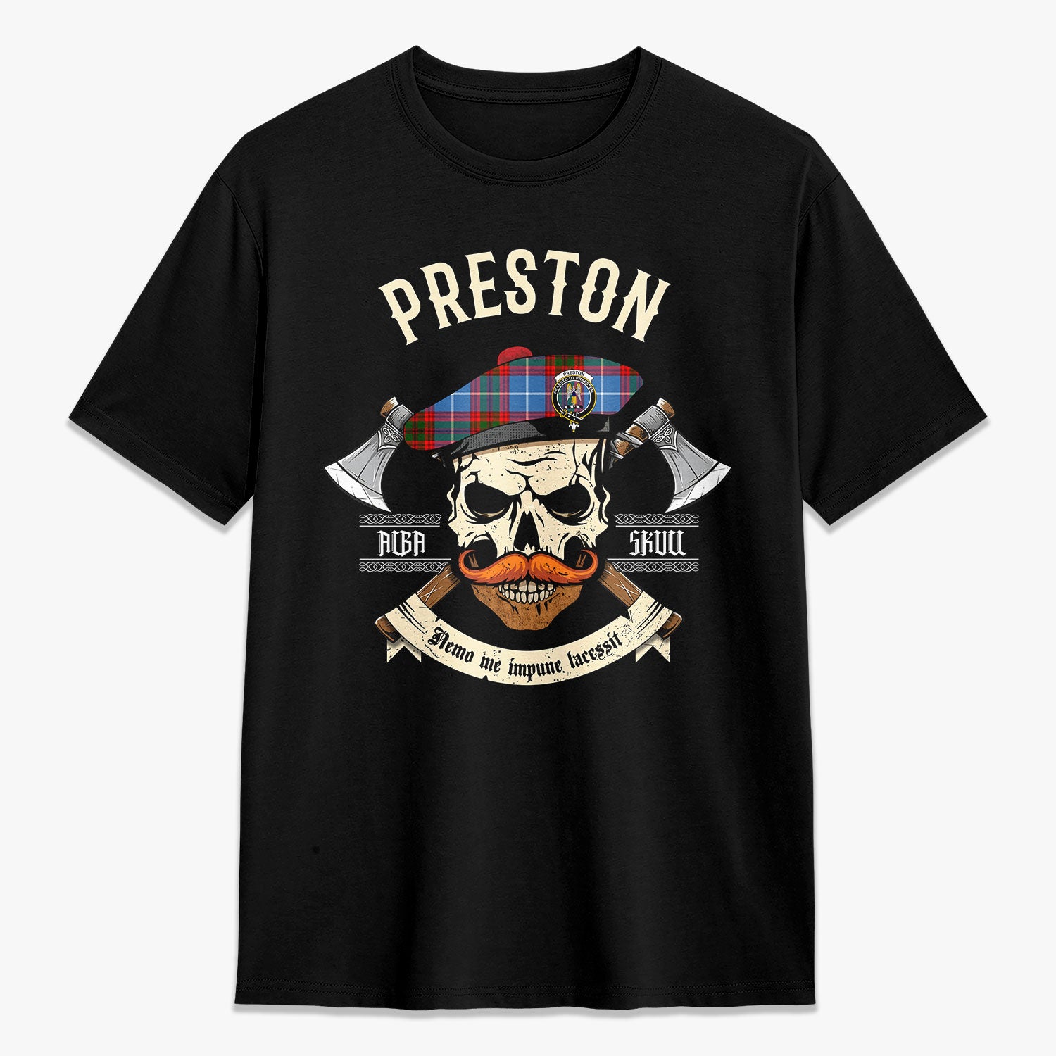 Preston Tartan Crest 2D T-shirt - Alba Skull Style,
