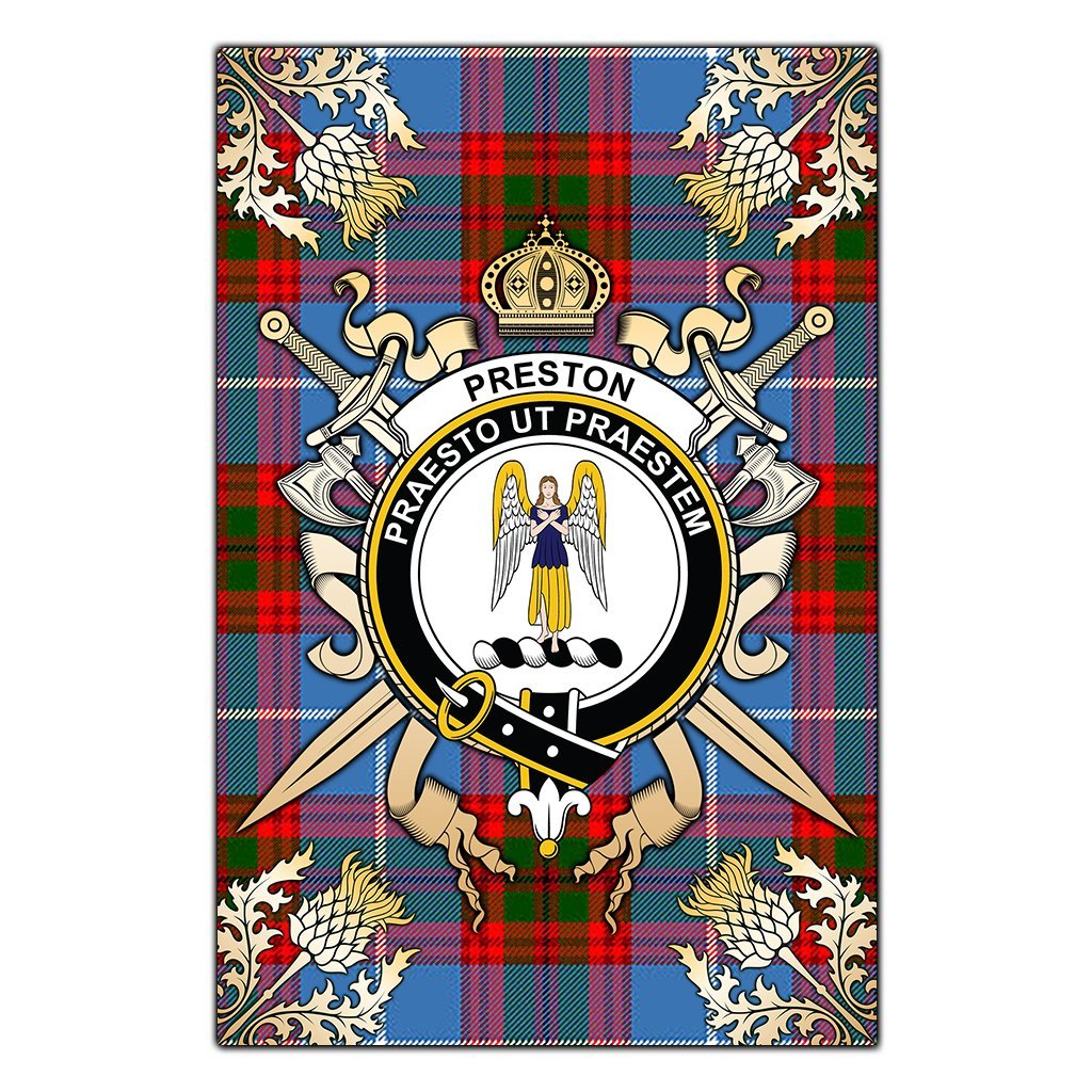 Preston Tartan Crest Black Garden Flag - Gold Thistle Style
