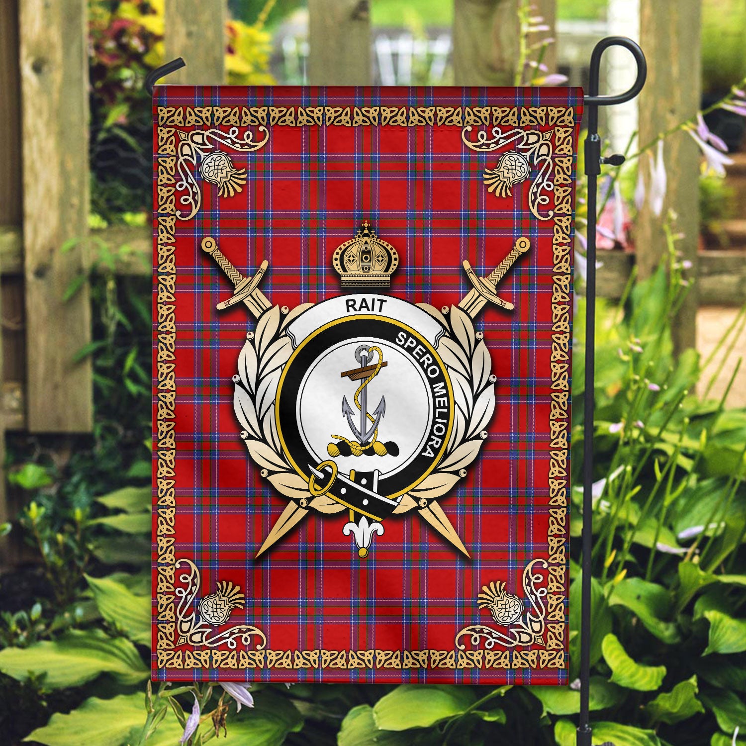 Rait Tartan Crest Garden Flag - Celtic Thistle Style