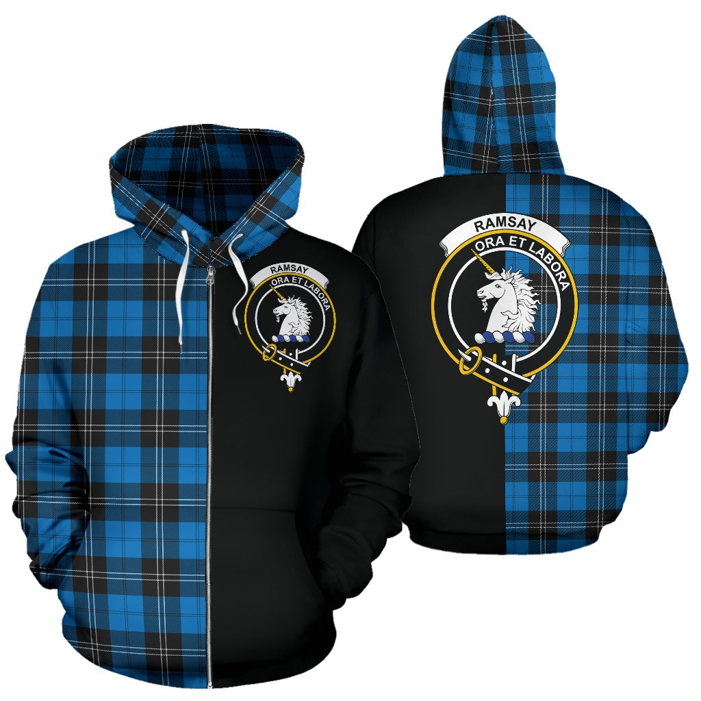 Ramsay Blue Ancient Tartan Crest Zipper Hoodie - Half Of Me Style
