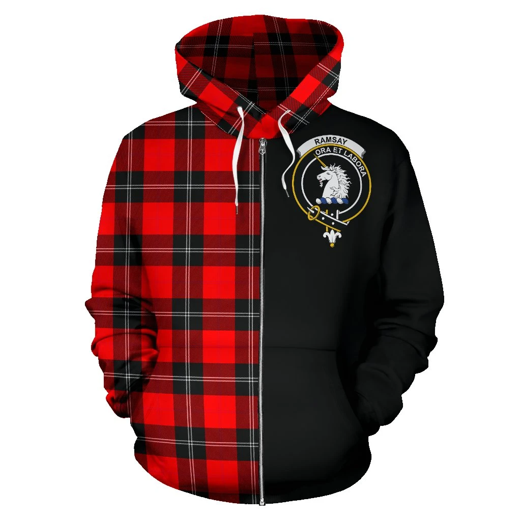 Ramsay Modern Tartan Crest Zipper Hoodie - Half Of Me Style