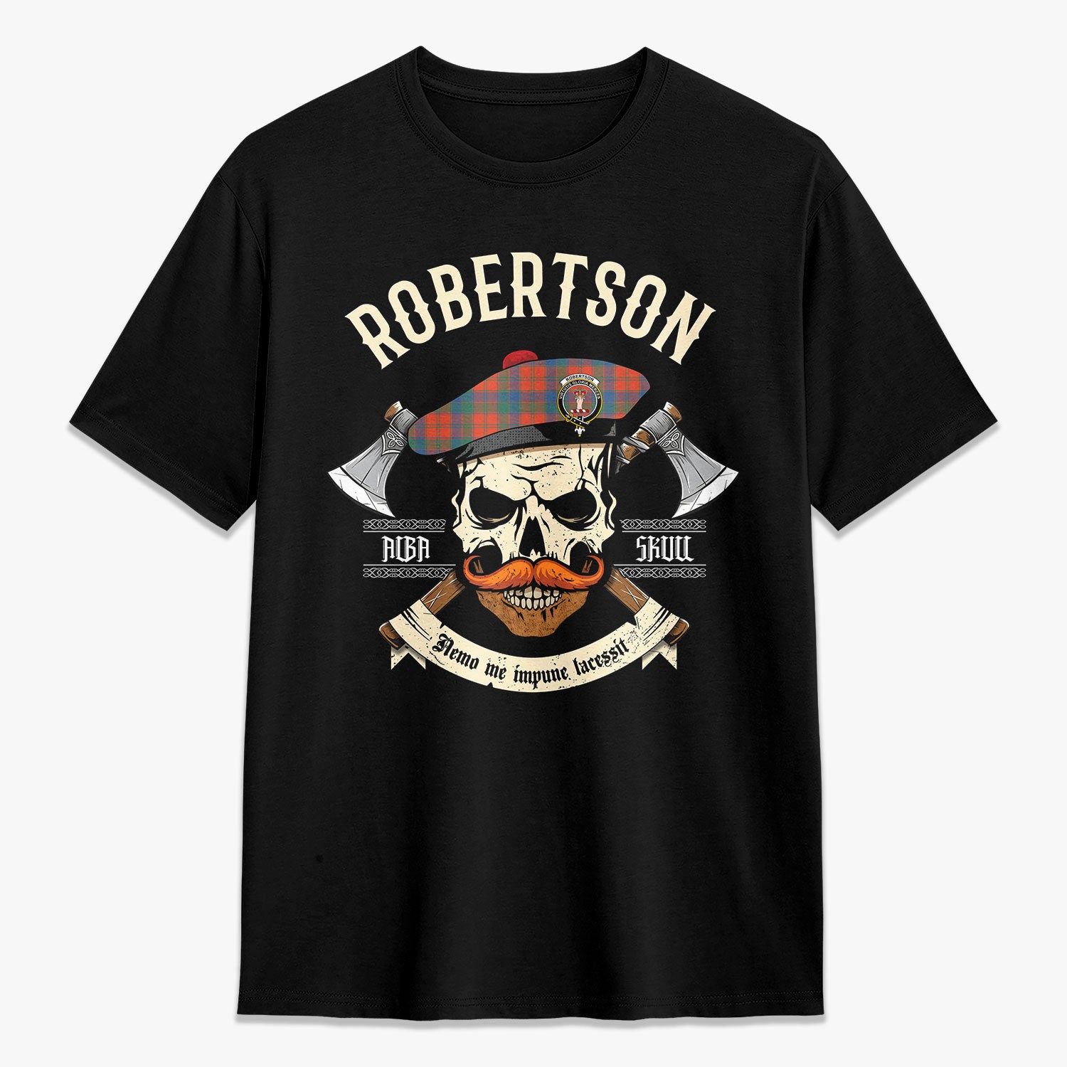 Robertson Ancient Tartan Crest 2D T-shirt - Alba Skull Style,