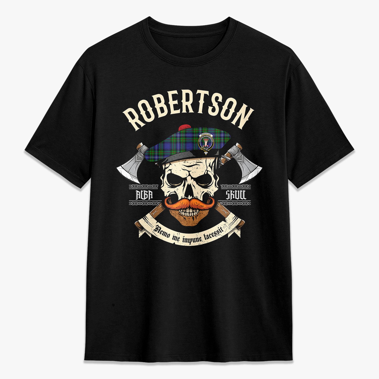 Robertson Hunting Modern Tartan Crest 2D T-shirt - Alba Skull Style,