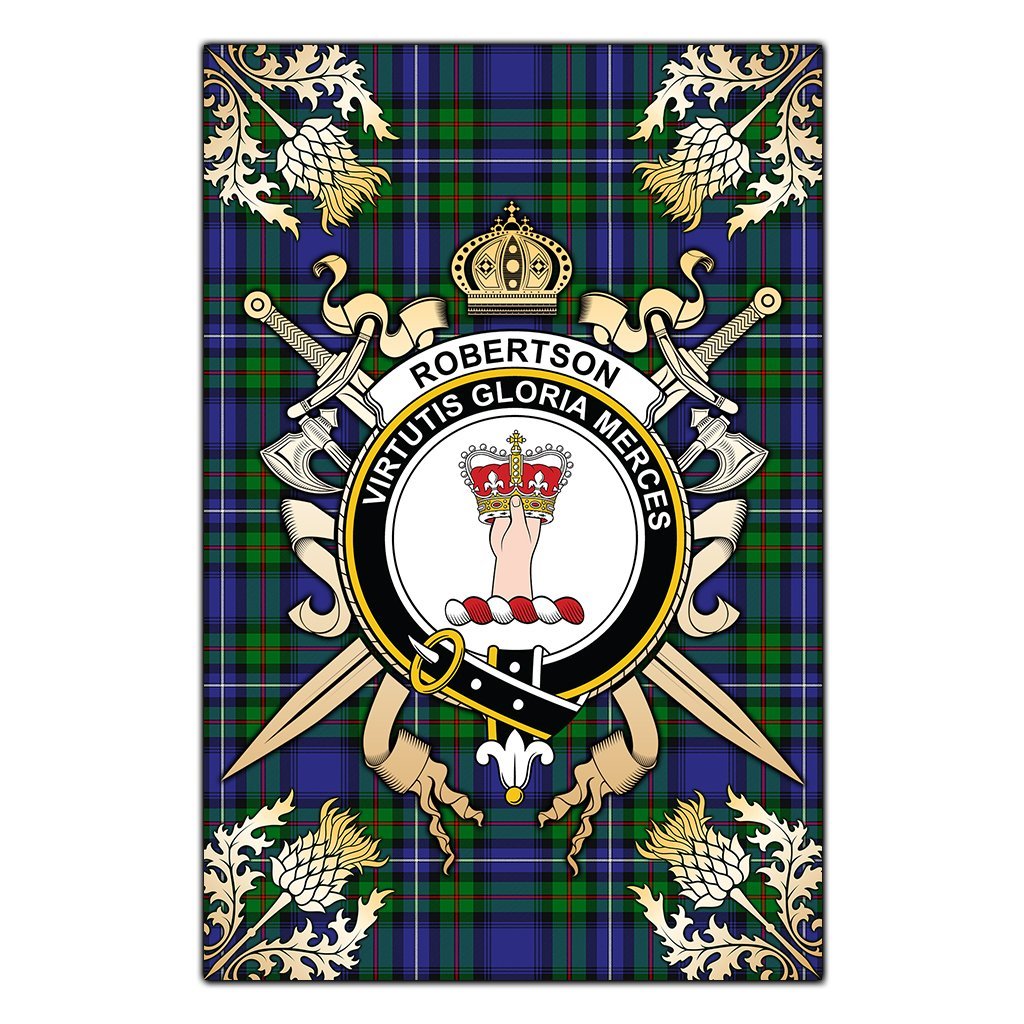 Robertson Hunting Modern Tartan Crest Black Garden Flag - Gold Thistle Style