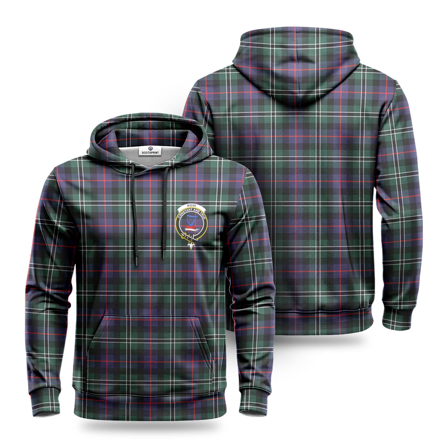 Rose Hunting Modern Tartan Crest Hoodie