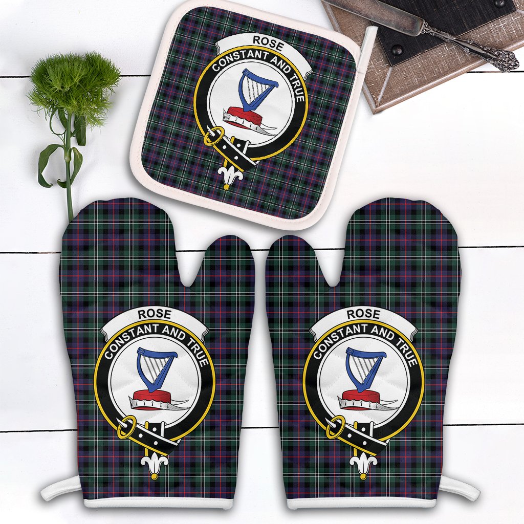 Rose Hunting Modern Tartan Crest Oven Mitt And Pot Holder (2 Oven Mitts + 1 Pot Holder)