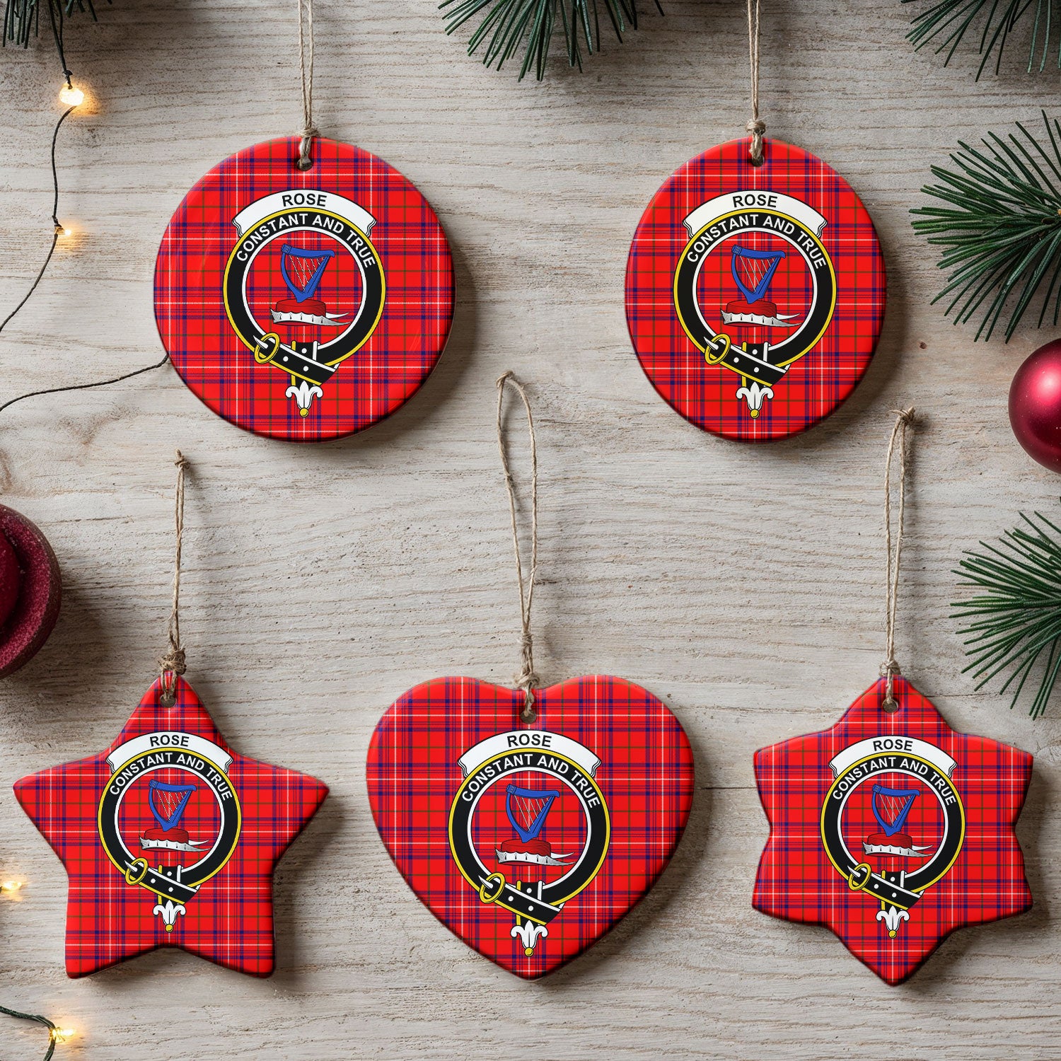 Rose Modern Tartan Crest Christmas Ceramic Ornament