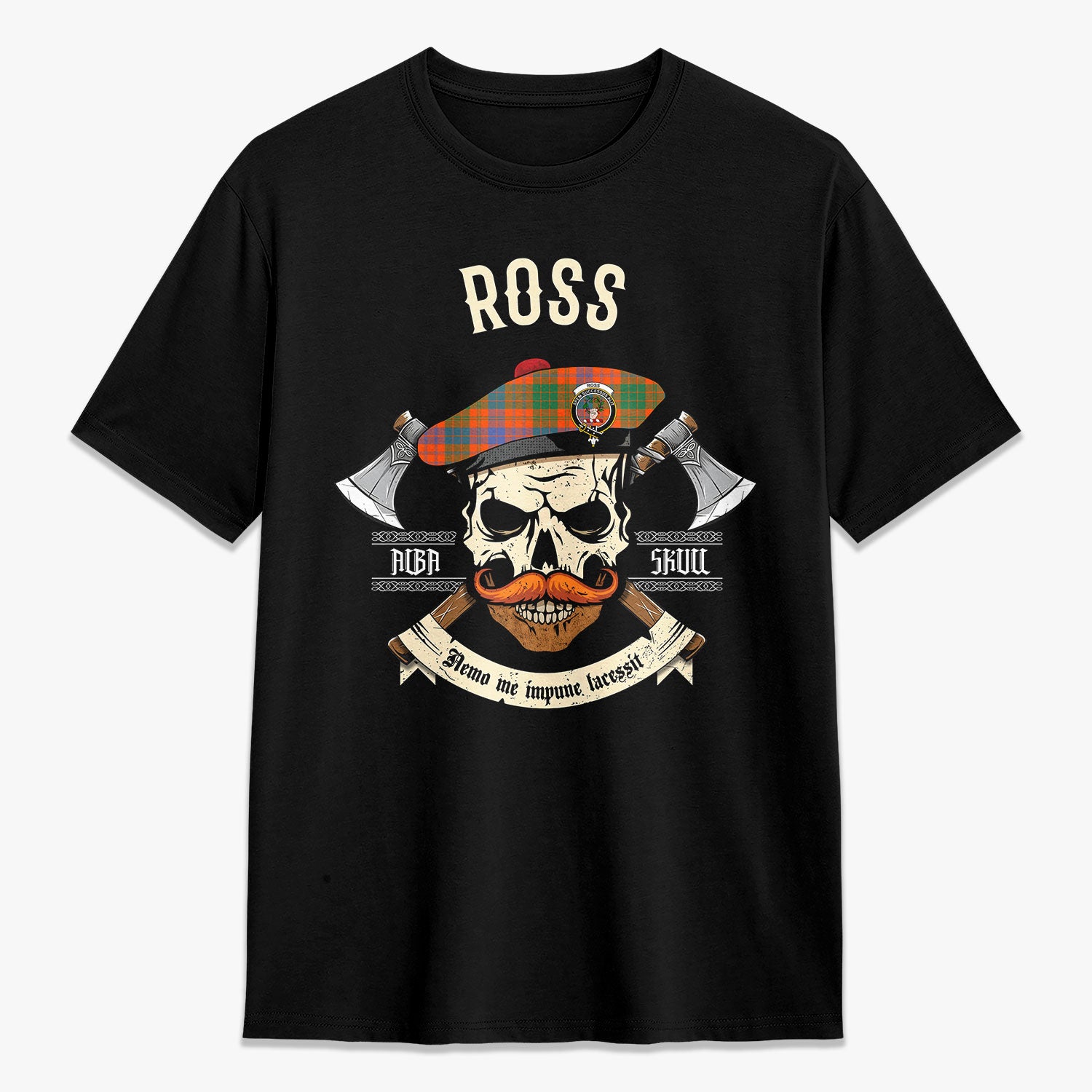 Ross Ancient Tartan Crest 2D T-shirt - Alba Skull Style,