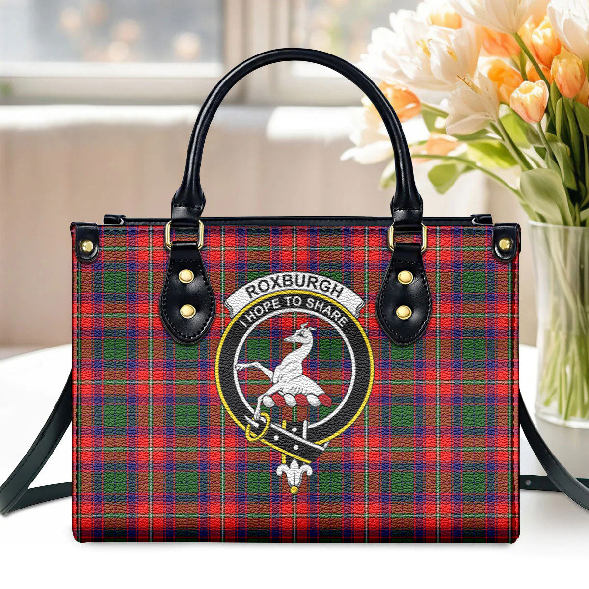 Roxburgh District Tartan Crest Leather Handbag