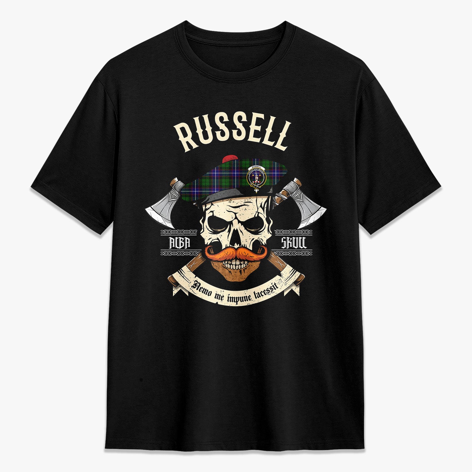 Russell Modern Tartan Crest 2D T-shirt - Alba Skull Style,