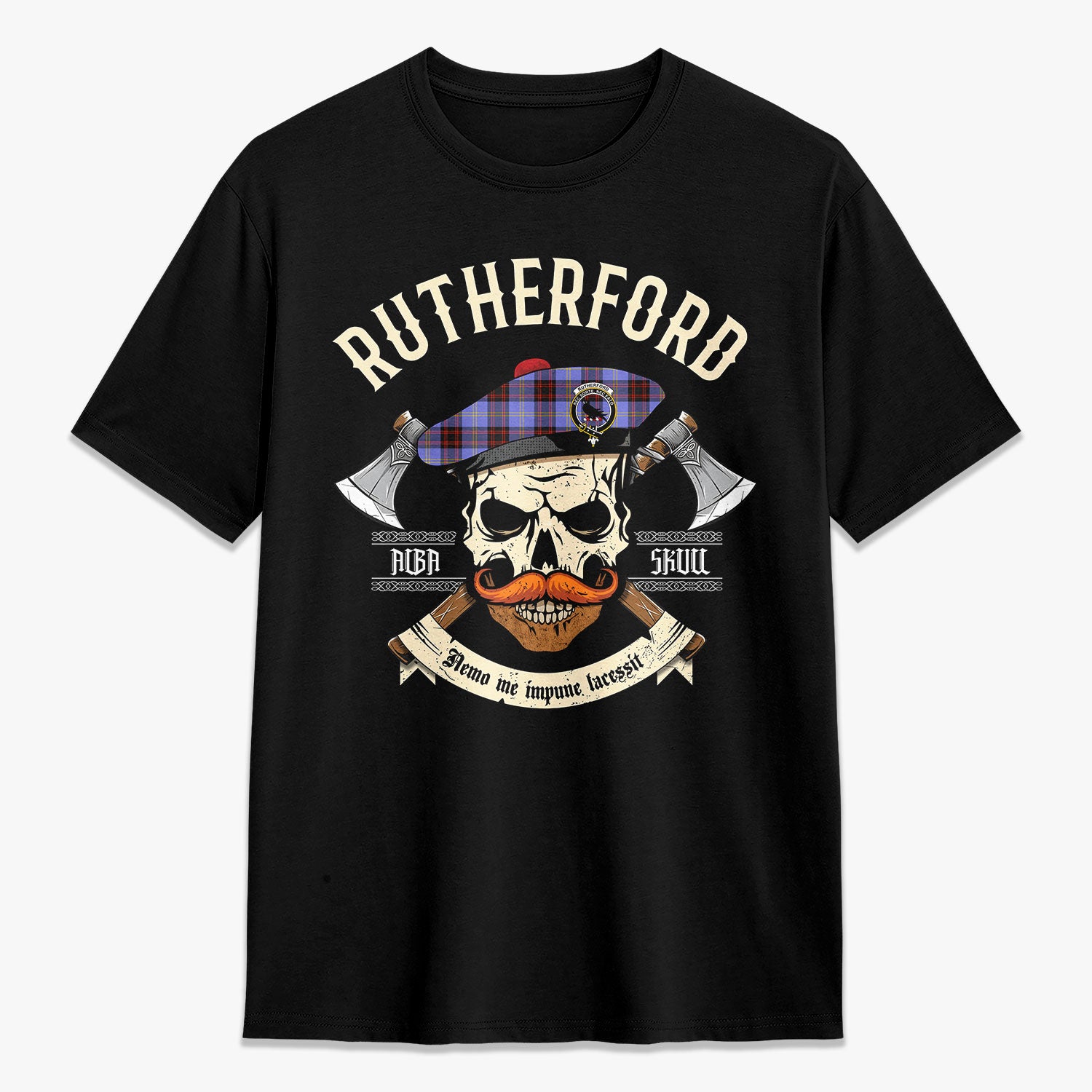 Rutherford Tartan Crest 2D T-shirt - Alba Skull Style,