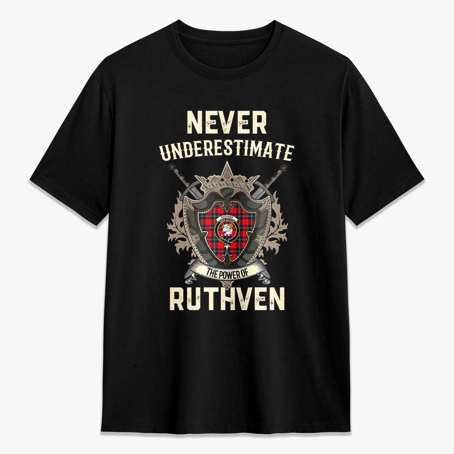 Ruthven Modern Tartan Crest 2D T-shirt - Never Underestimate Style