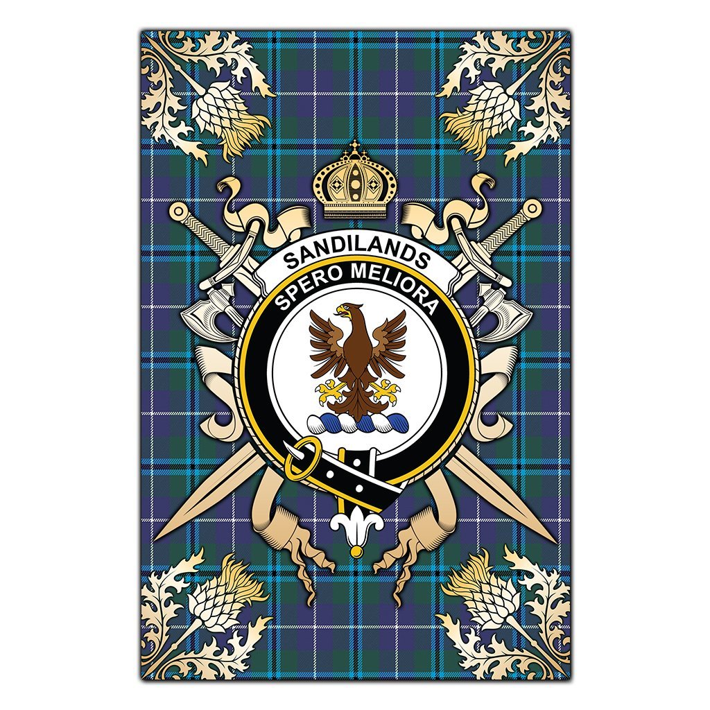 Sandilands Tartan Crest Black Garden Flag - Gold Thistle Style