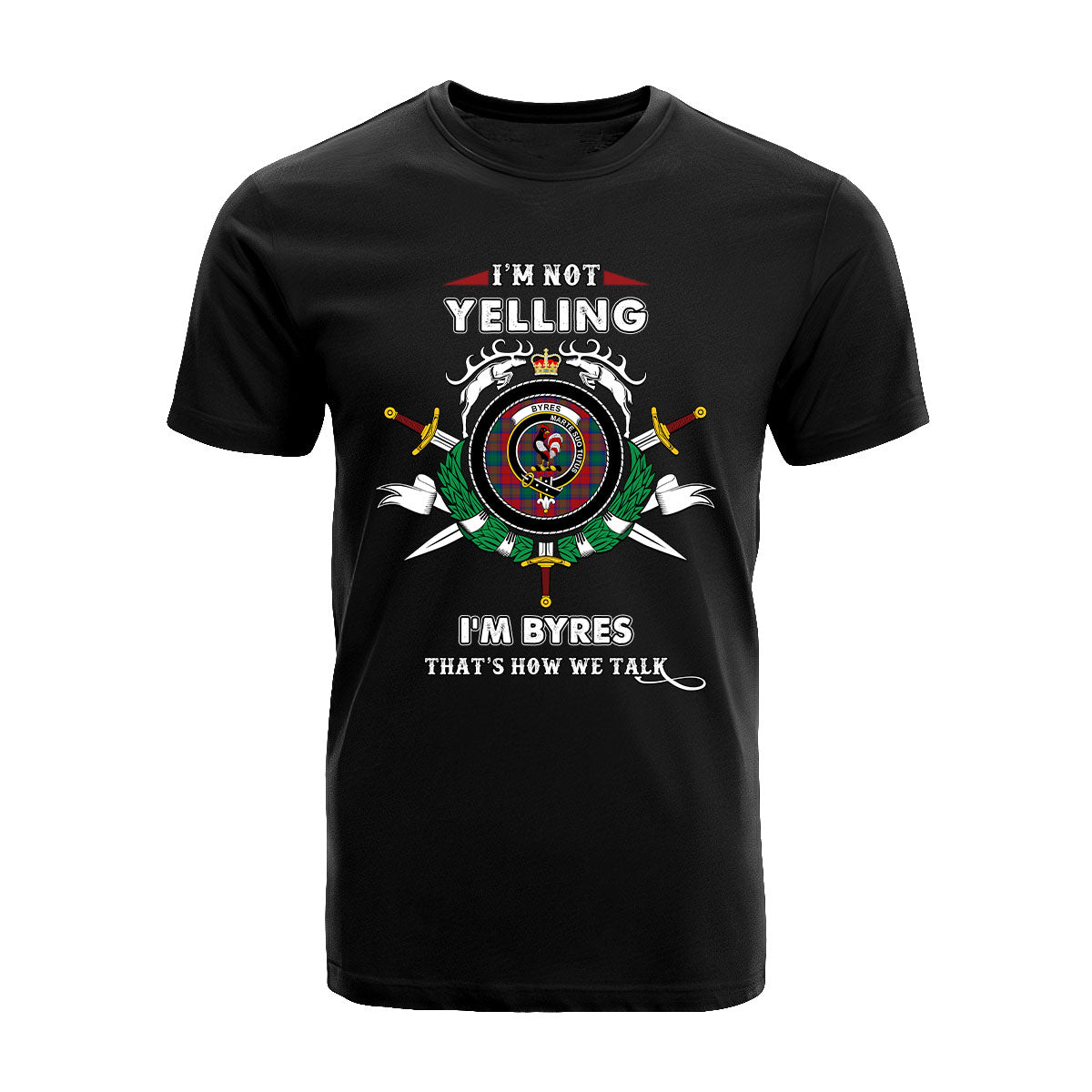 Byres Tartan Crest T-shirt - I'm not yelling style