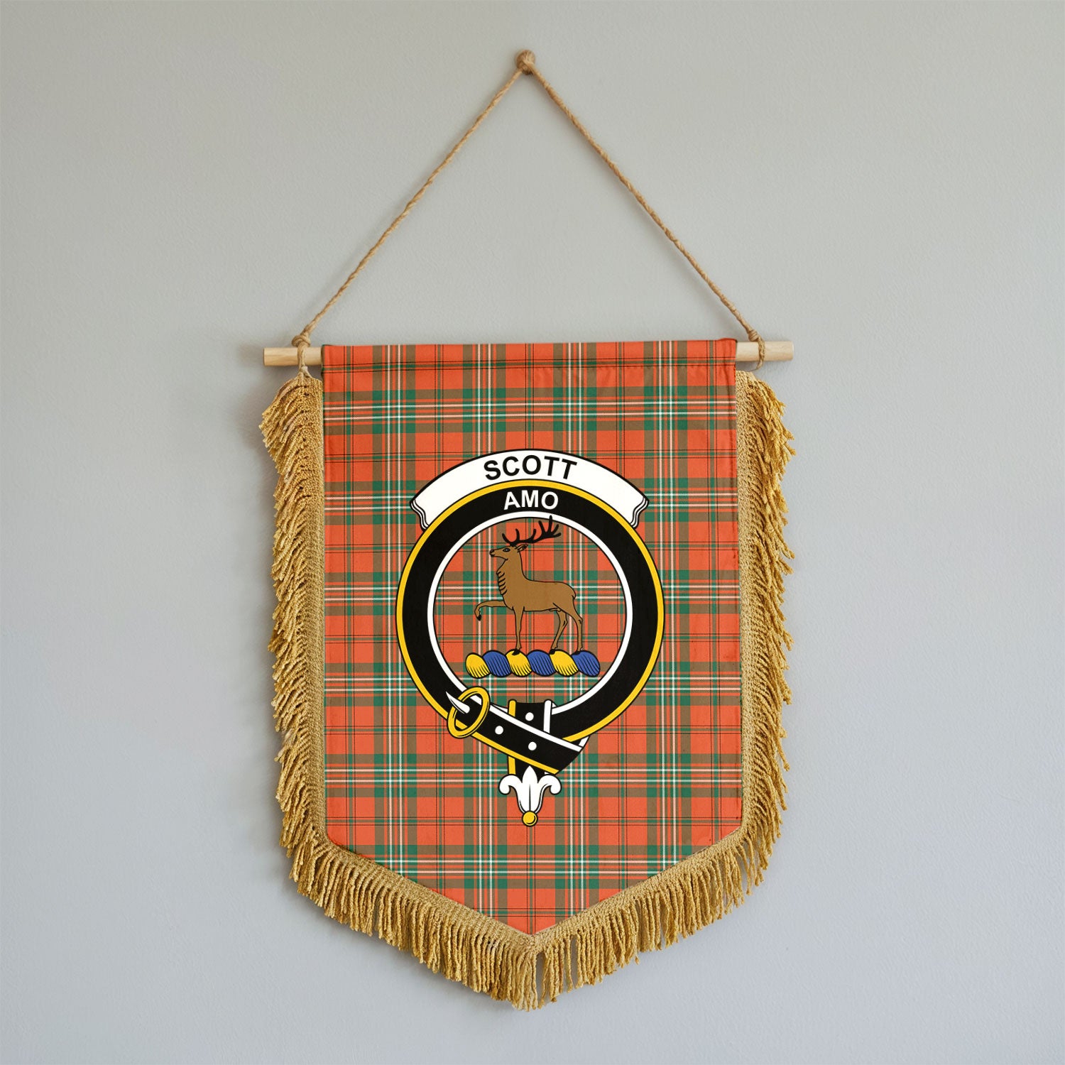 Scott Ancient Tartan Crest Wall Hanging Banner - Wood Pole
