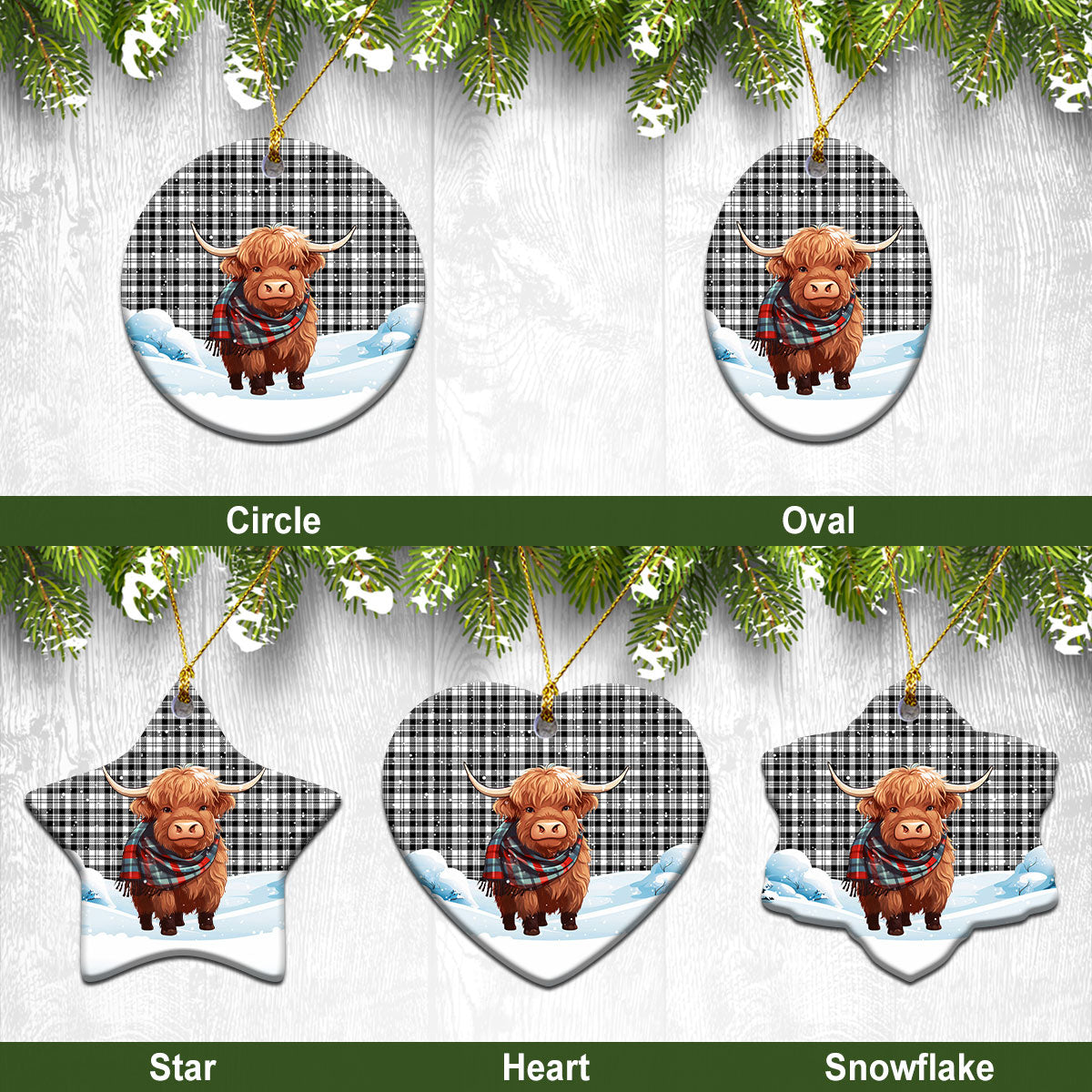 Scott Black & White Modern Tartan Christmas Ceramic Ornament - Highland Cows Snow Style