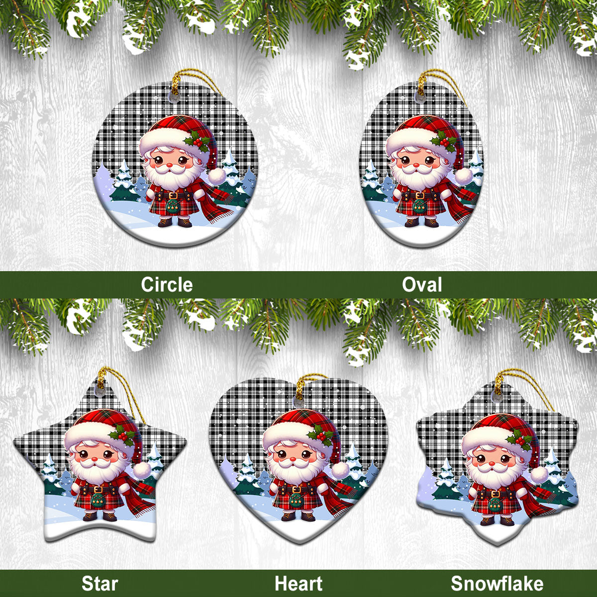Scott Black & White Modern Tartan Christmas Ceramic Ornament - Santa Claus In Kilt Style