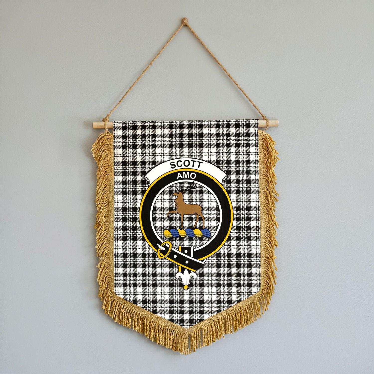 Scott Black & White Modern Tartan Crest Wall Hanging Banner - Wood Pole