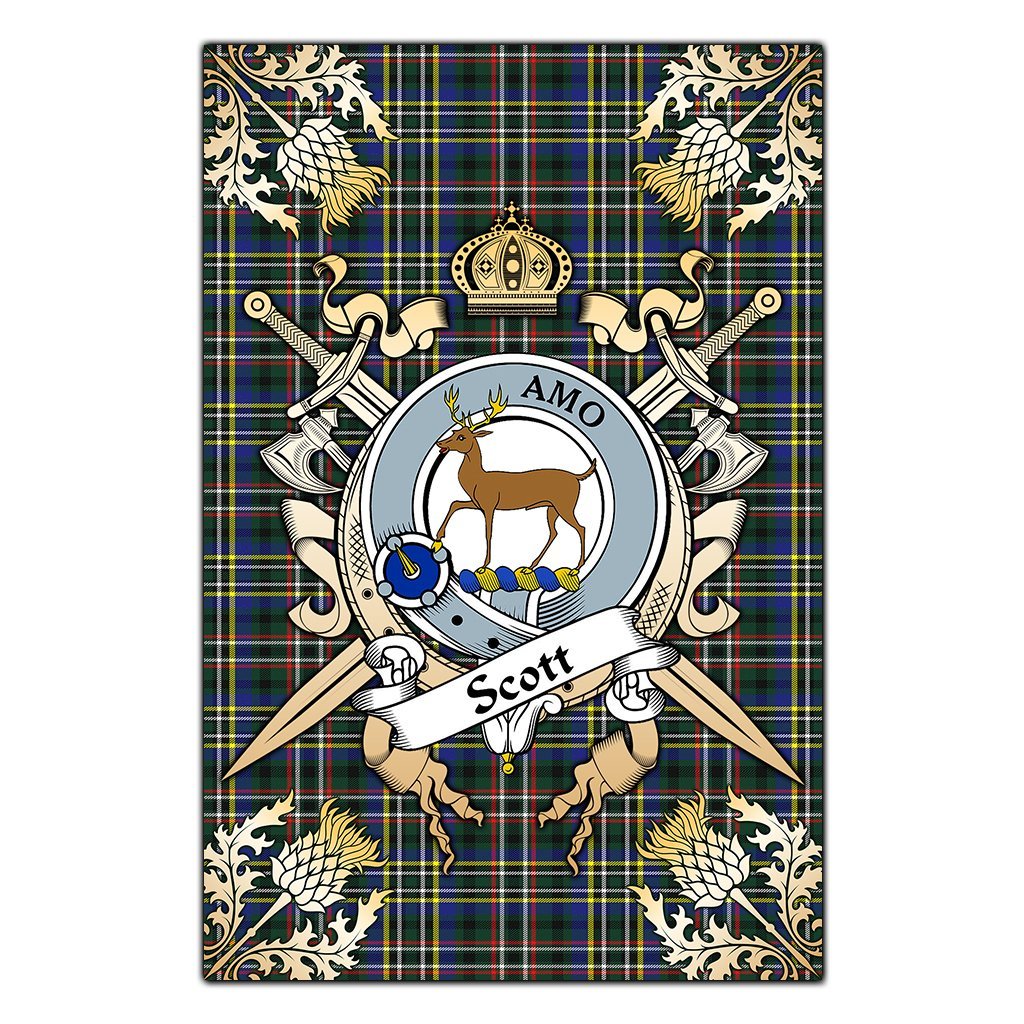 Scott Green Modern Tartan Crest Black Garden Flag - Gold Thistle Style