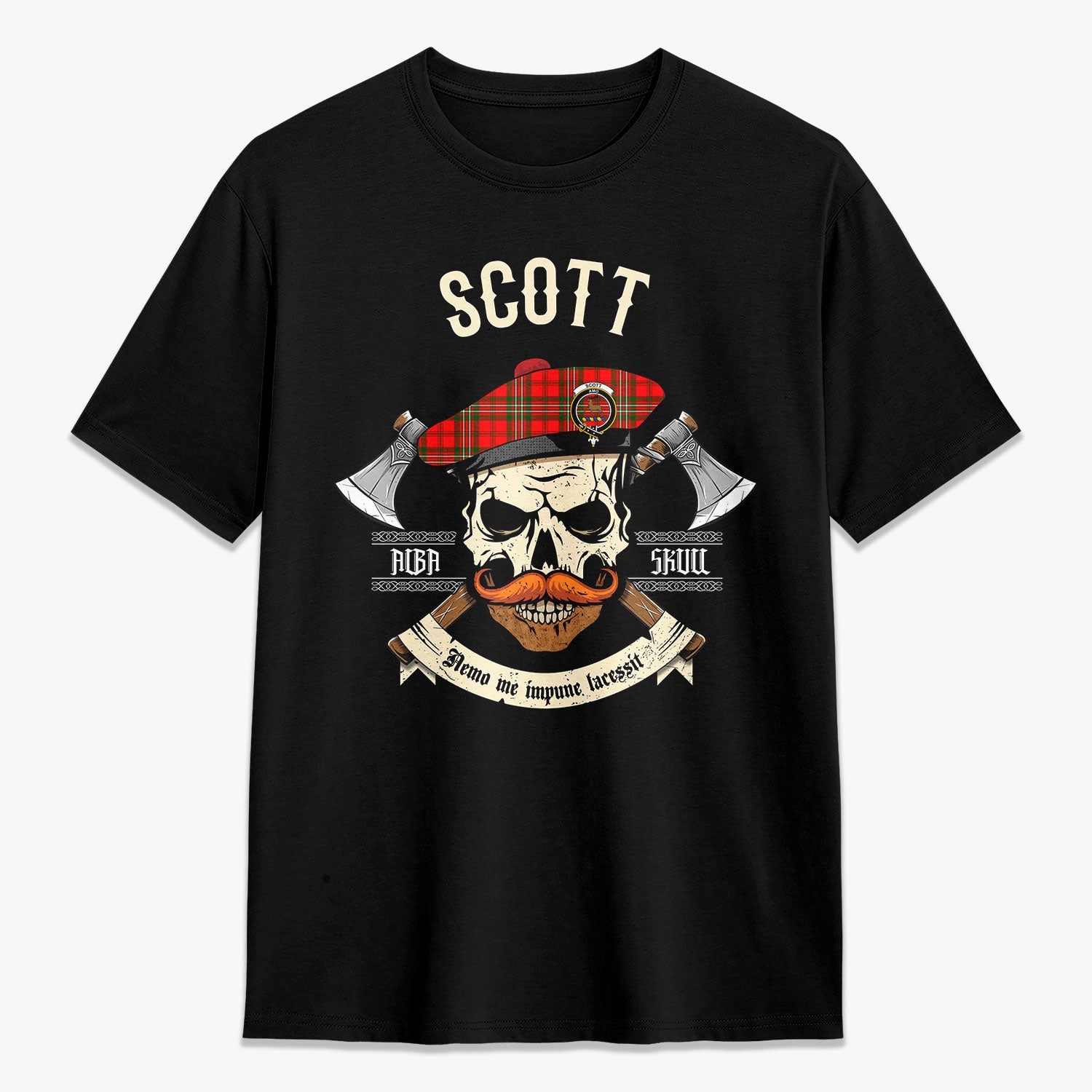 Scott Modern Tartan Crest 2D T-shirt - Alba Skull Style,