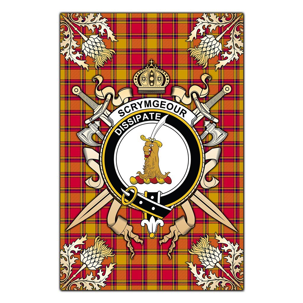 Scrymgeour Tartan Crest Black Garden Flag - Gold Thistle Style