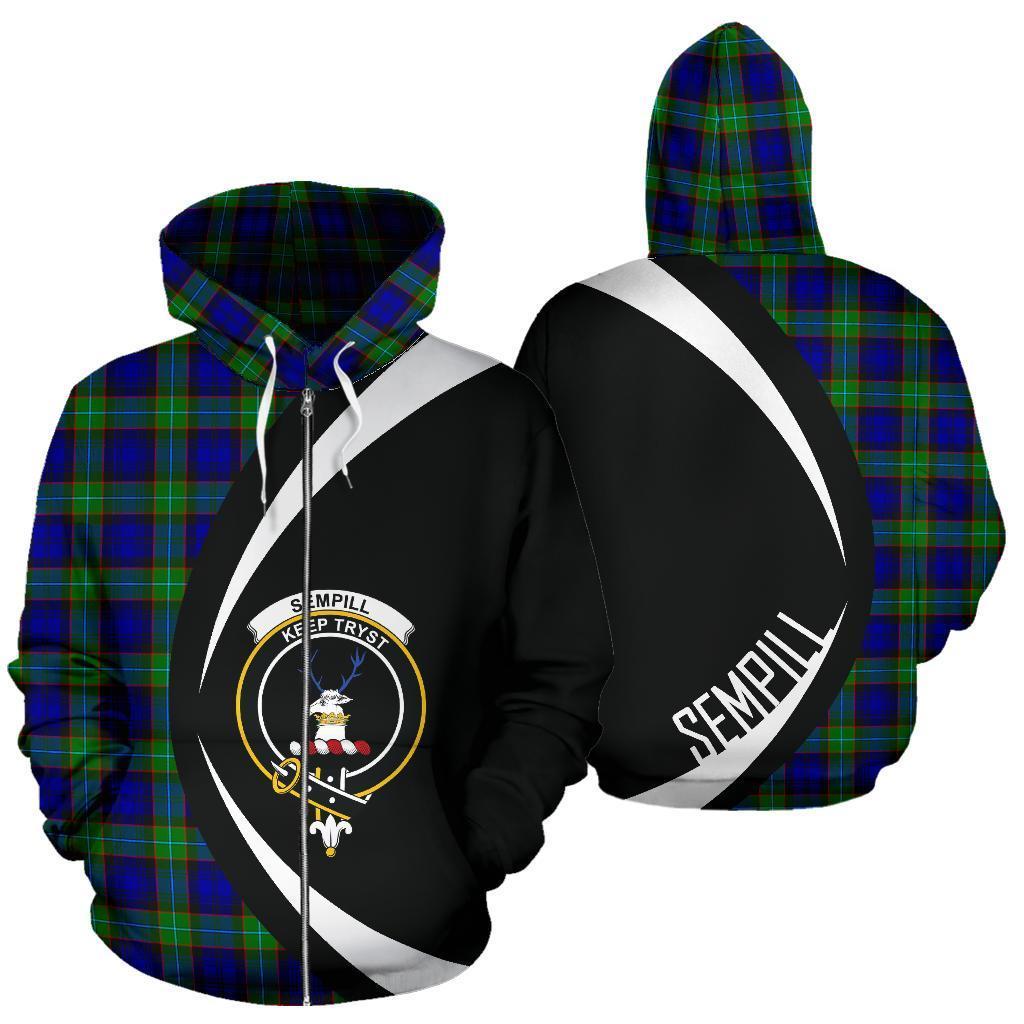Sempill Modern Tartan Crest Zipper Hoodie - Circle Style
