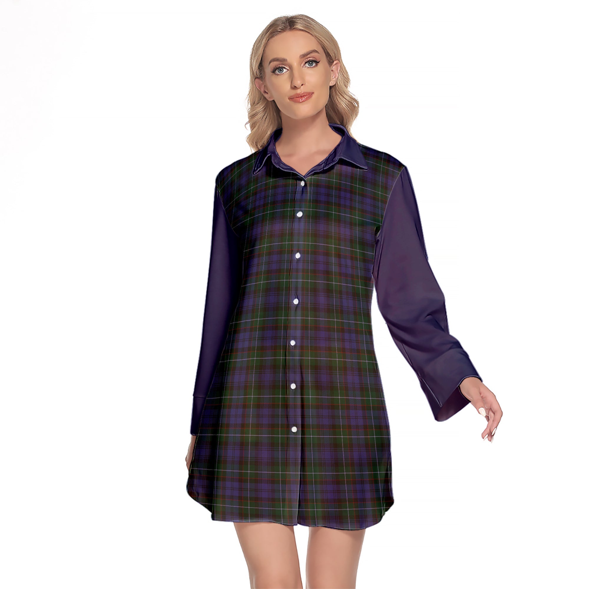 Sempill Tartan Women's Lapel Shirt Dress With Long Sleeve