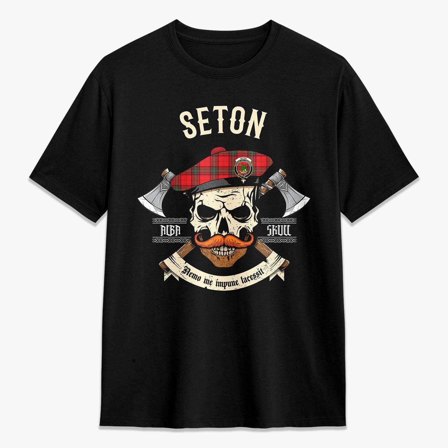 Seton Modern Tartan Crest 2D T-shirt - Alba Skull Style,