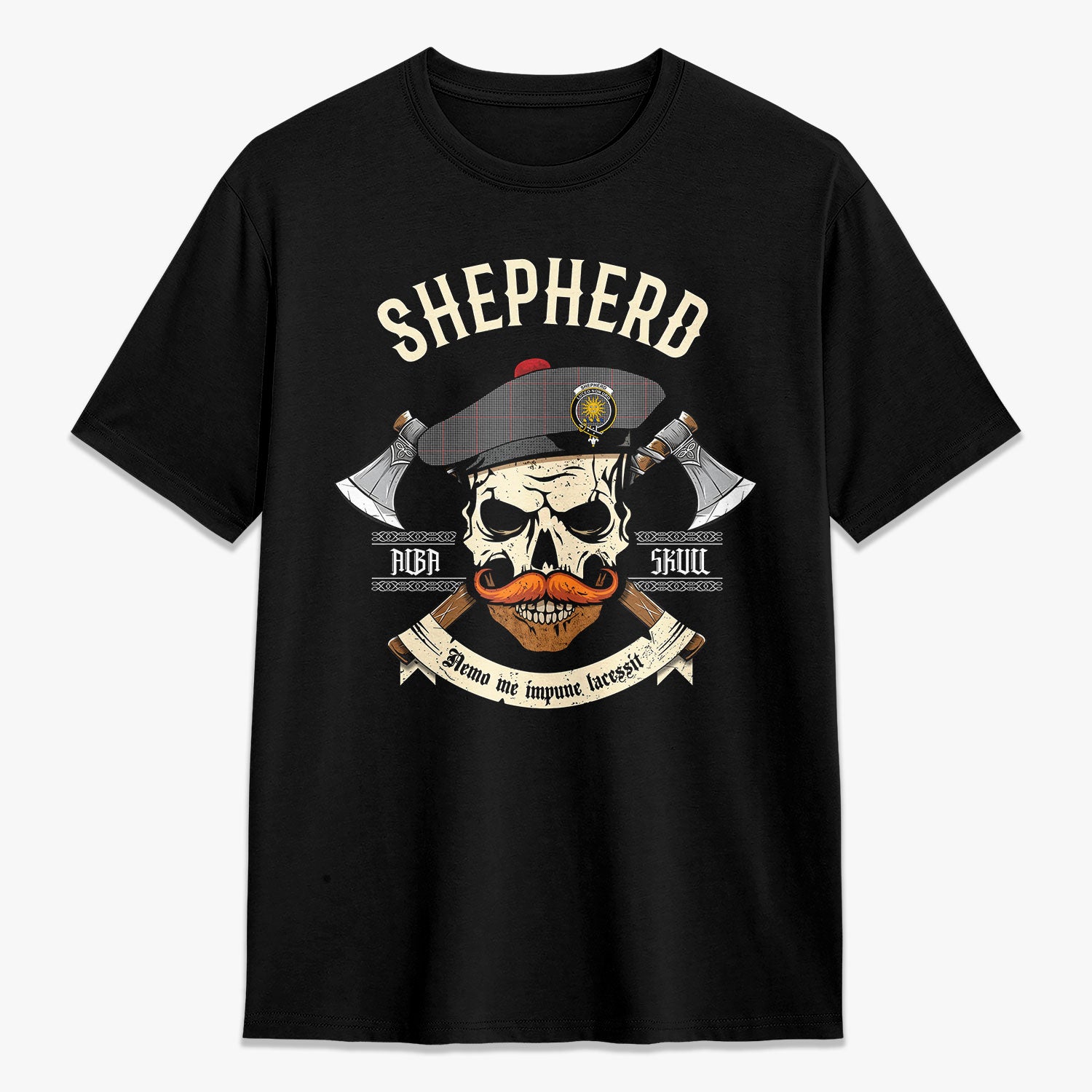 Shepherd Tartan Crest 2D T-shirt - Alba Skull Style,