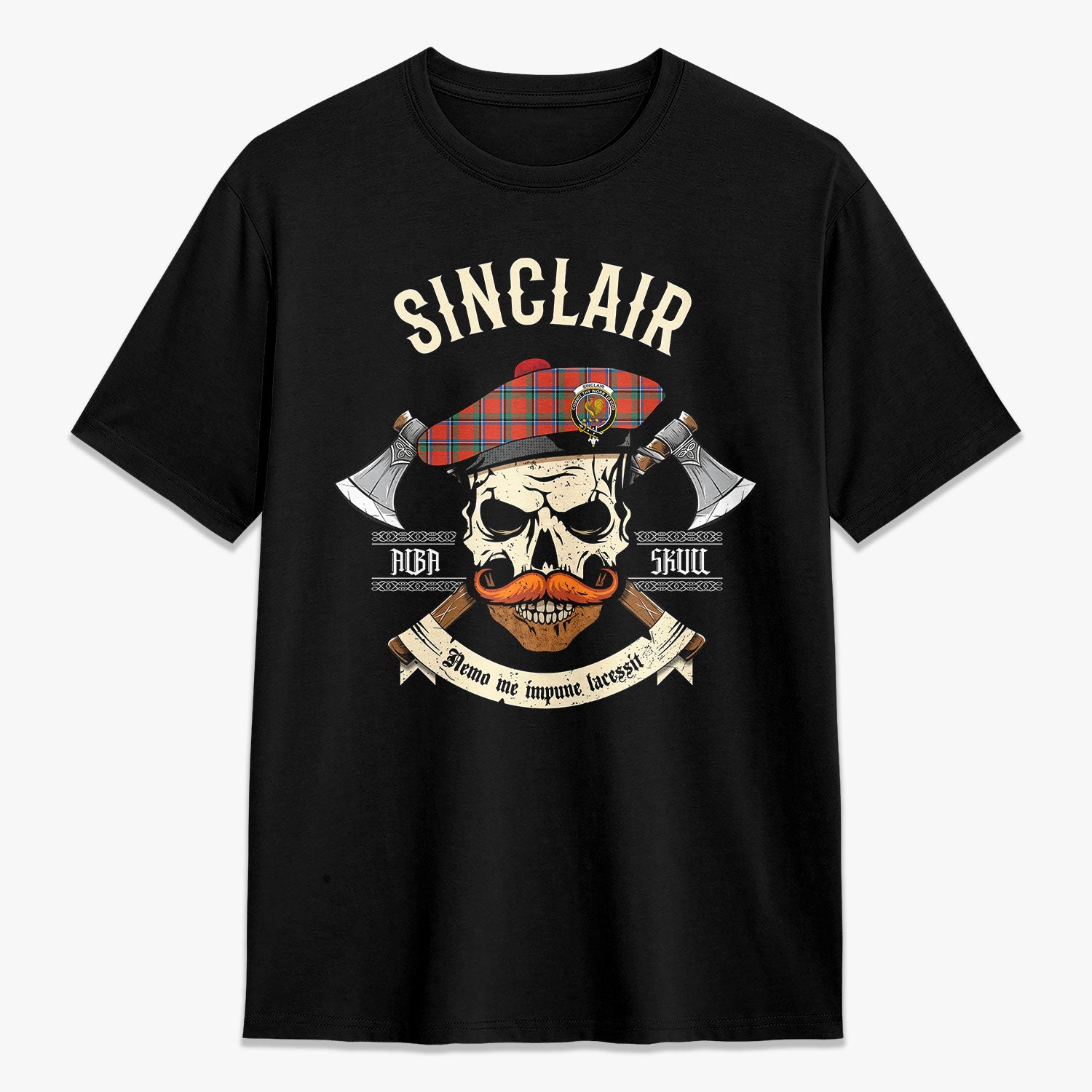 Sinclair Ancient Tartan Crest 2D T-shirt - Alba Skull Style,